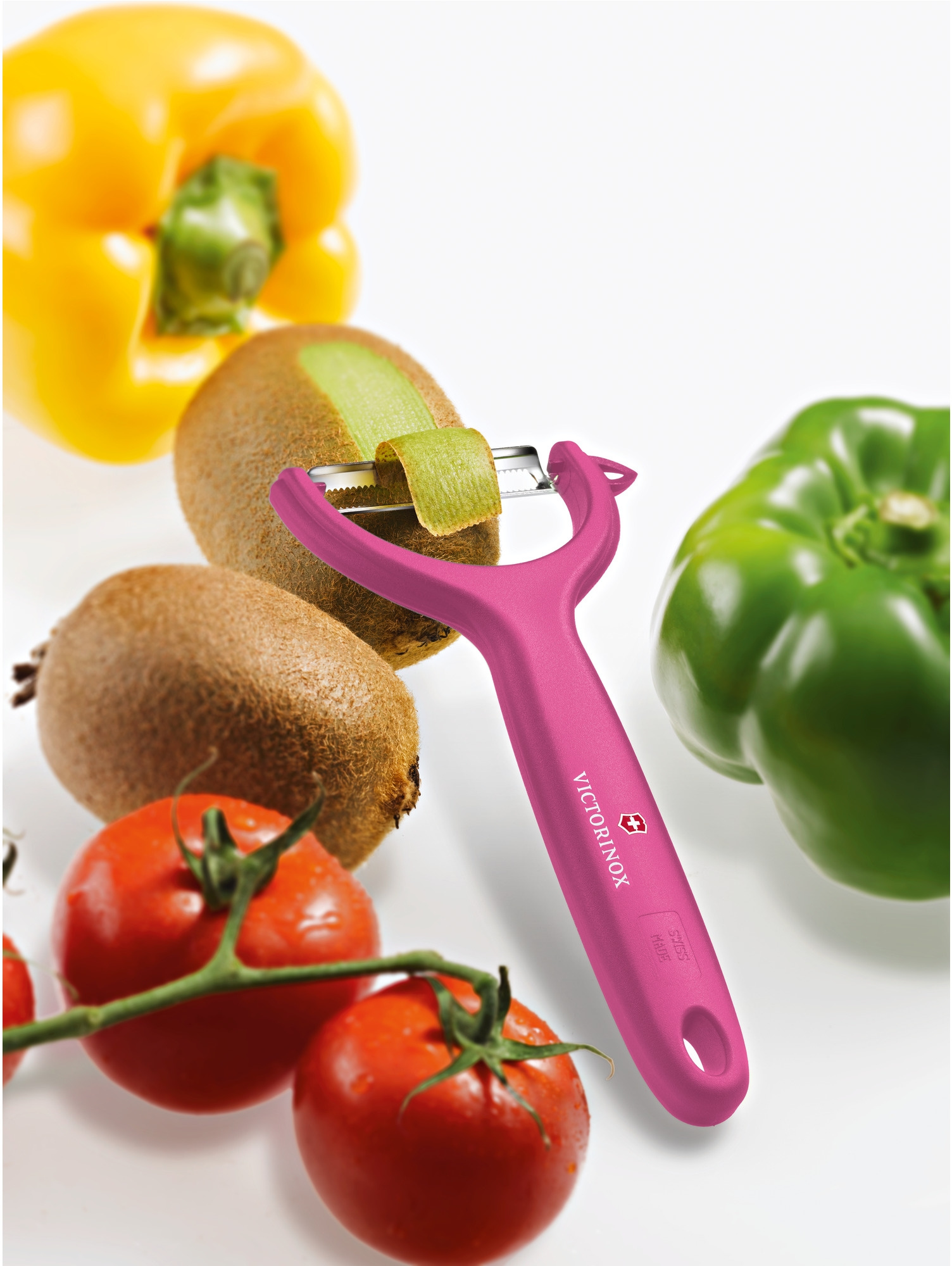 Кулинария – это искусство, в котором рисуешь со вкусом и одеваешься в цвета. Как хозяин своей кухни, вы заслуживаете подходящих инструментов для выражения своего творчества. Вот тут-то и пригодится овощечистка для томатов и киви Victorinox. Её зазубренный чистящий край готов к работе с самой твердой кожурой, а эргономичная рукоять делает приготовление пищи таким же увлекательным, как и простым.