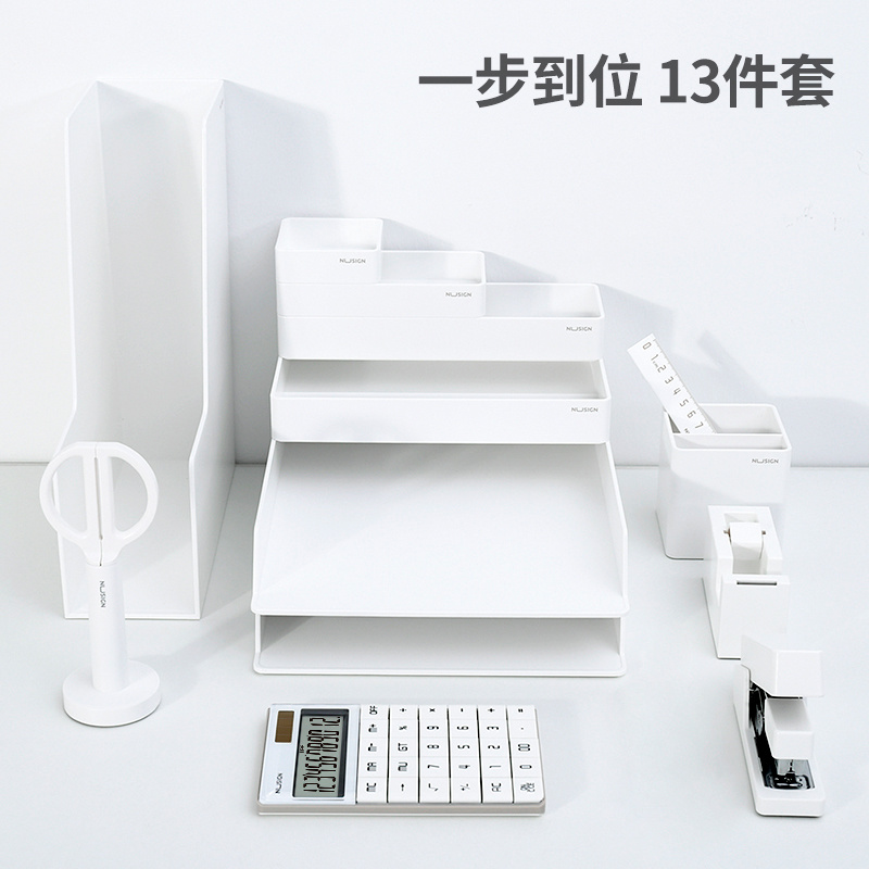 6шт. подставка/ 1шт. лоток/ 1шт. подставка для ручек/ 1шт. диспенсер для скотч/ 1шт. калькулятор/ 1шт. ножницы/ 1шт. линейка/ 1шт. степлер
