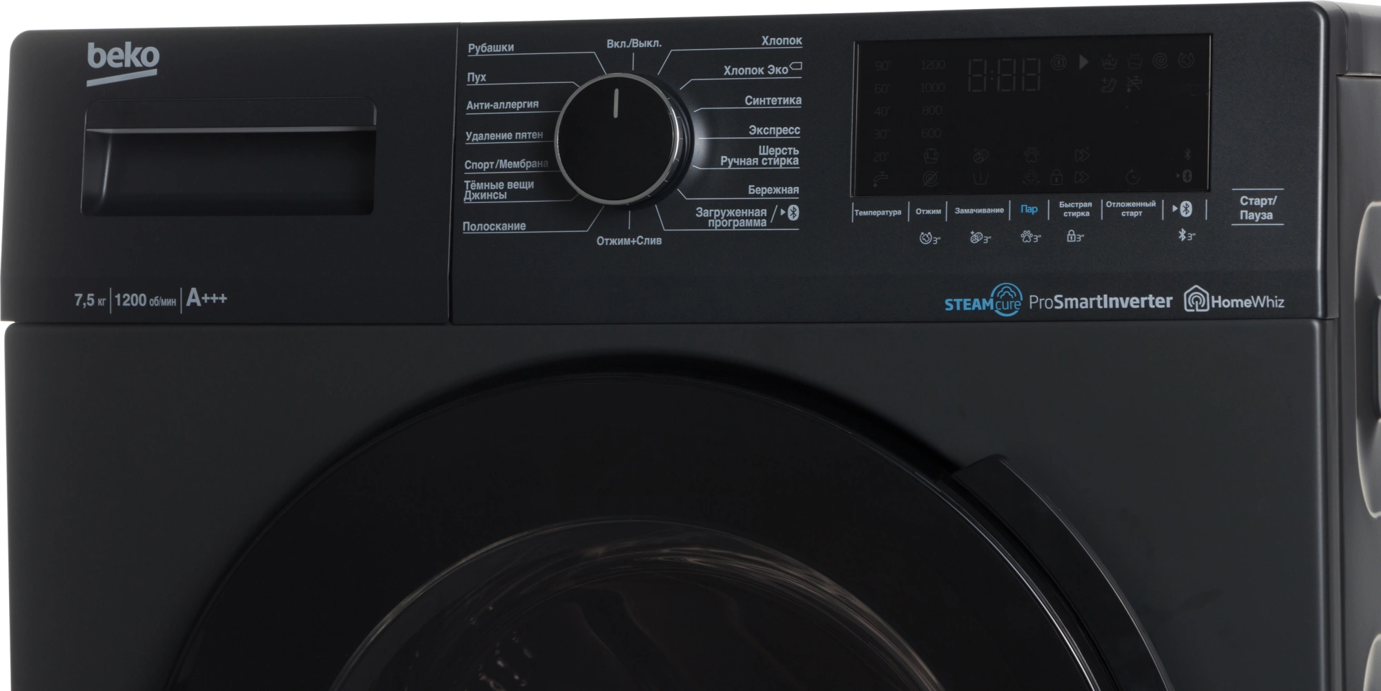 Технология обработки паром SteamCure, Замачивание, Быстрая стирка, Дополнительное полоскание, HomeWhiz, беспроводное управление, Удаление шерсти животных