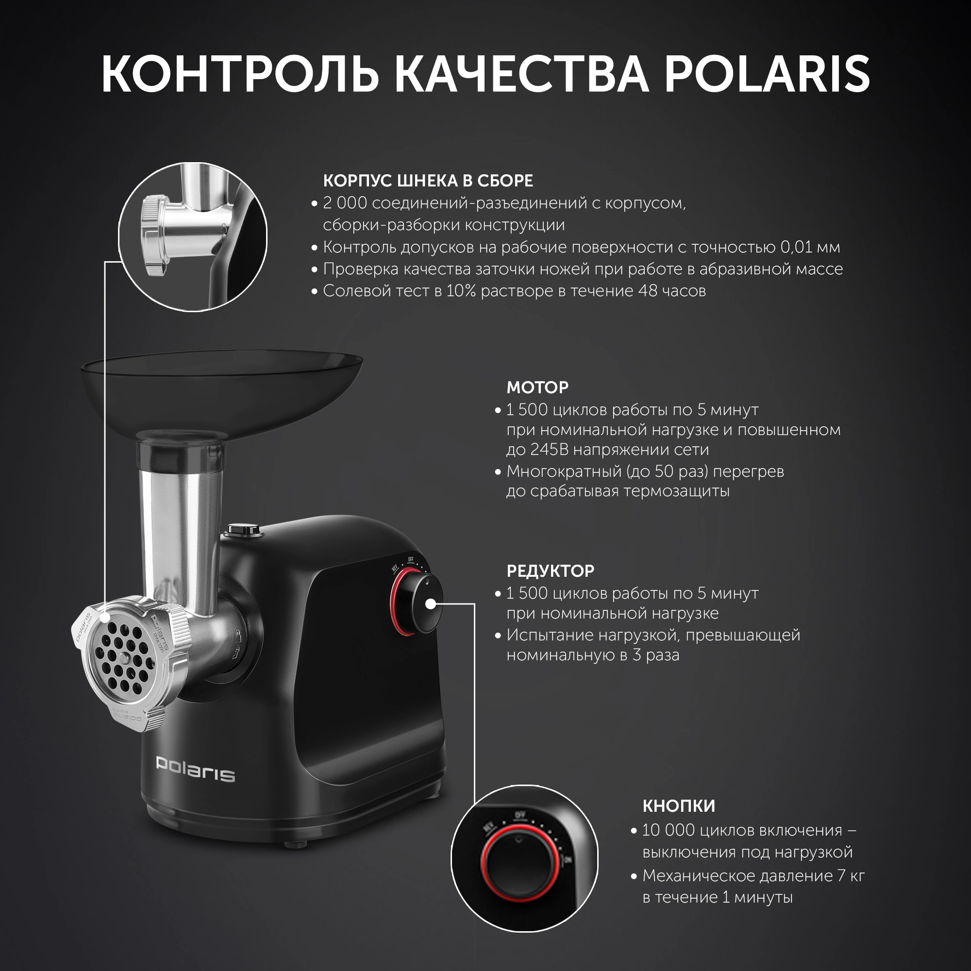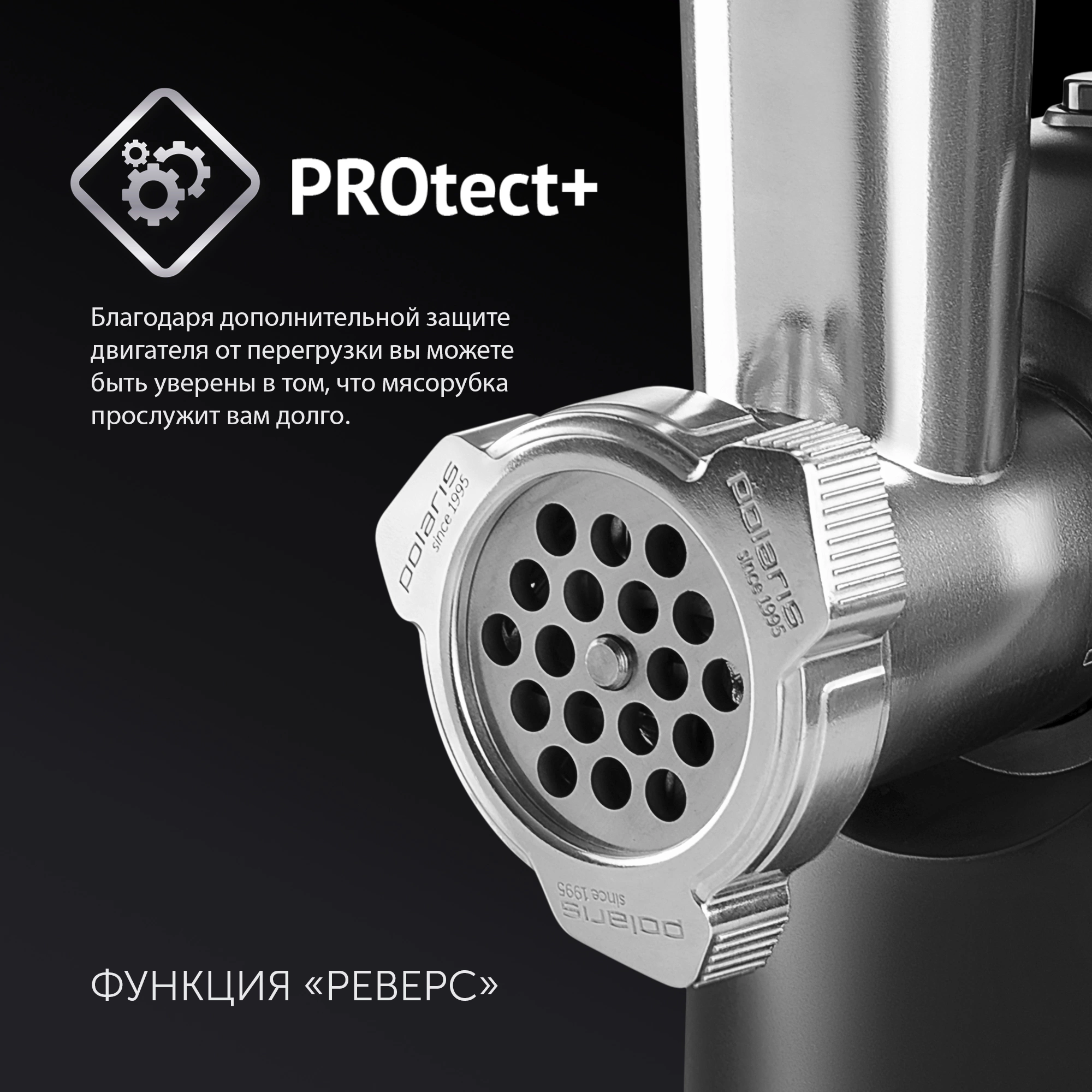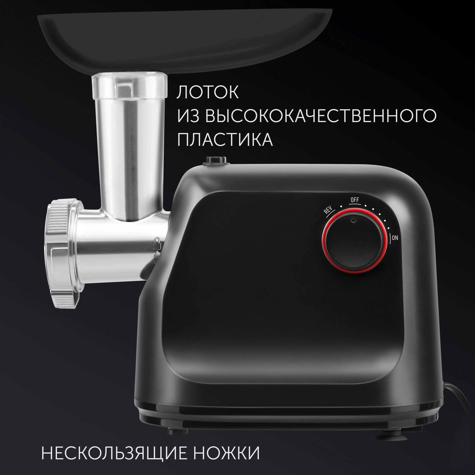 Высокая производительность: до 1,8 кг фарша в минуту! Функция реверса. Дополнительная защита двигателя от перегрузки. Нескользящие ножки.
