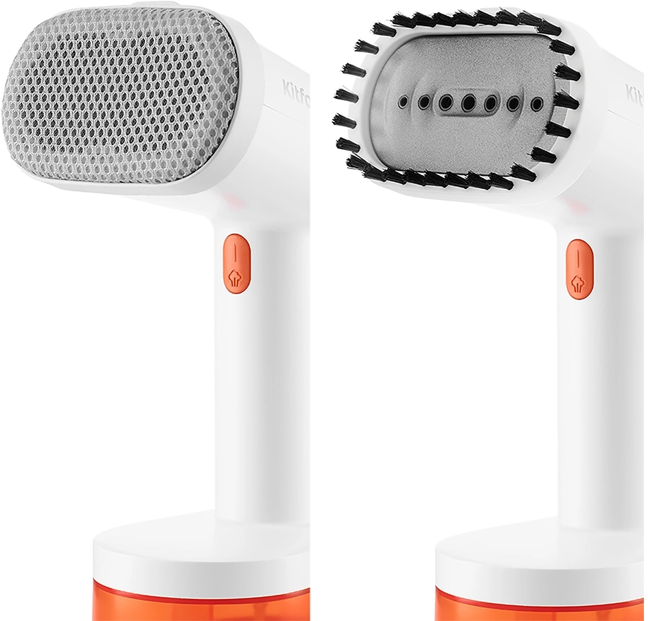 В комплекте с ручным отпаривателем идут 2 насадки. Ворсовая легко чистит загрязнённые поверхности, а также убирает шерсть домашних животных, волосы, ворс. Тканевая насадка необходима при работе с деликатными тканями.