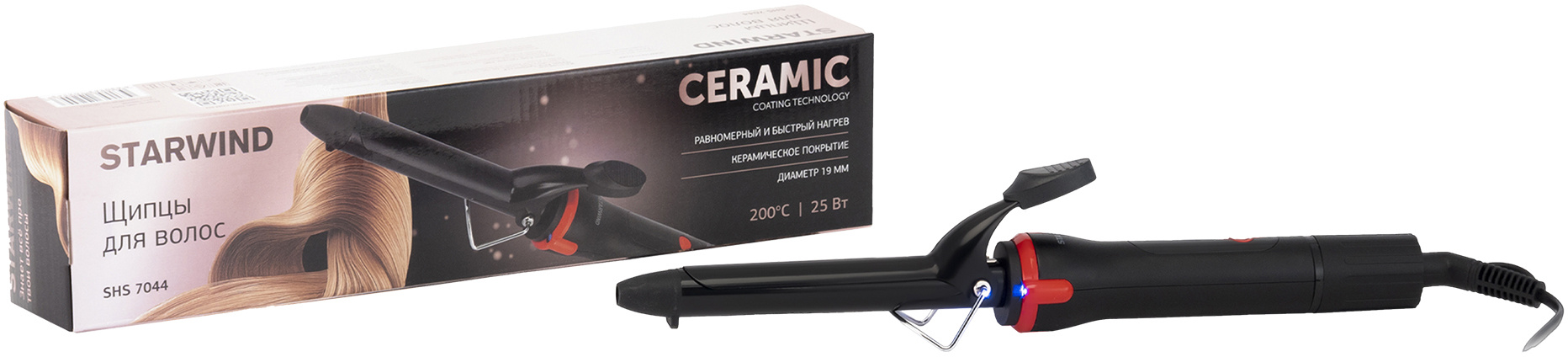 Щипцы Starwind SHS 7044 предназначены для завивки и укладки волос в домашних условиях. Максимальный нагрев составляет 200 градусов и обеспечивает стойкий результат. Керамическое покрытие способствует более щадящему воздействию на структуру волос. Термоизоляционный наконечник помогает формированию ровного и качественного завитка, так как за него можно держаться пальцами. Шарнирное крепление шнура исключает возможность перекручивания провода и делает процесс использования более комфортным. Индикатор готовности к эксплуатации позволяет понять, что устройство достигло нужной температуры. Черный цвет корпуса с красными акцентами в целом создает стильный и привлекательный внешний вид.