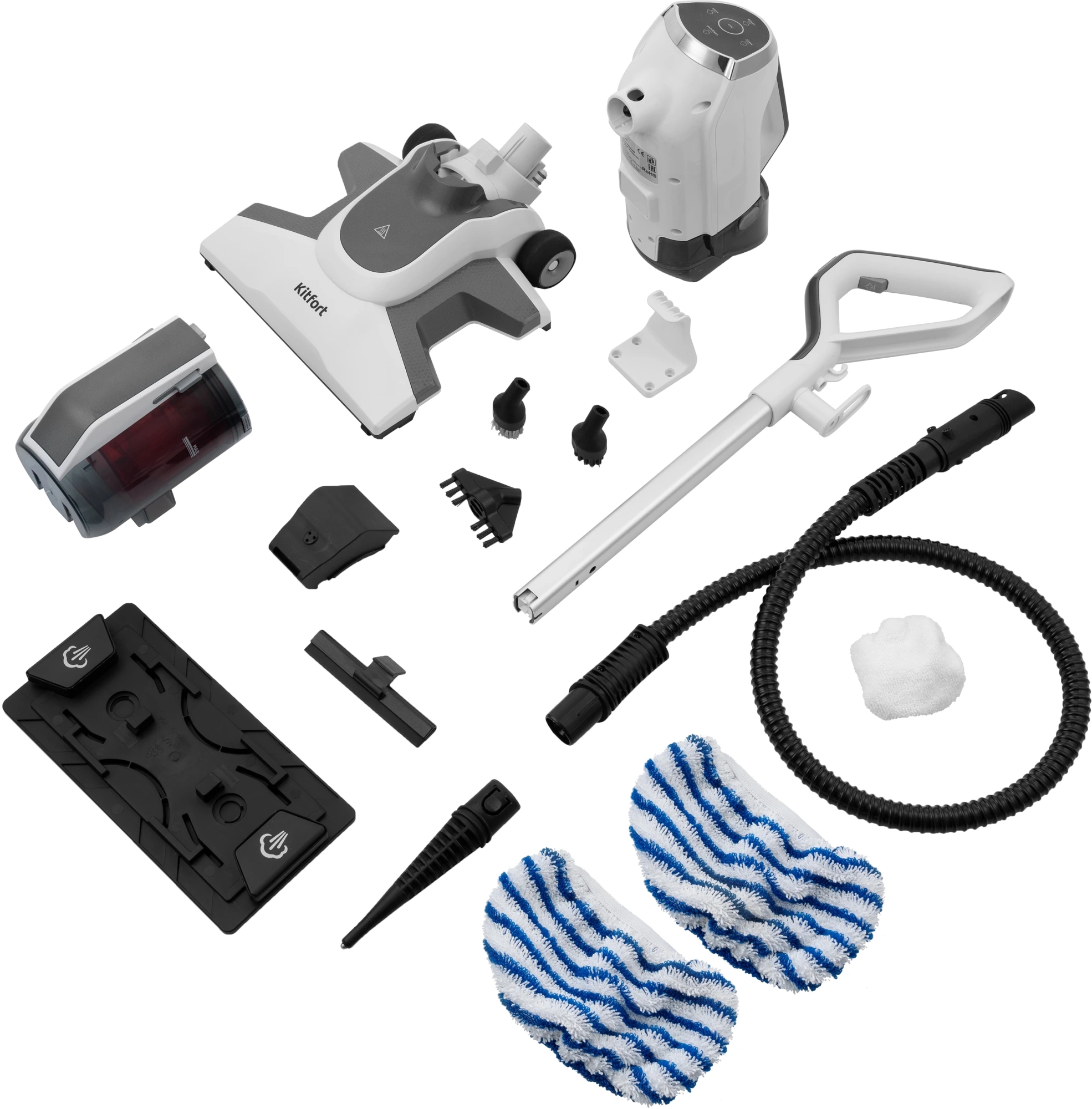 Тряпка для отпаривания одежды и тканей, резиновый скребок для очистки окон и зеркал, гибкий шланг.
