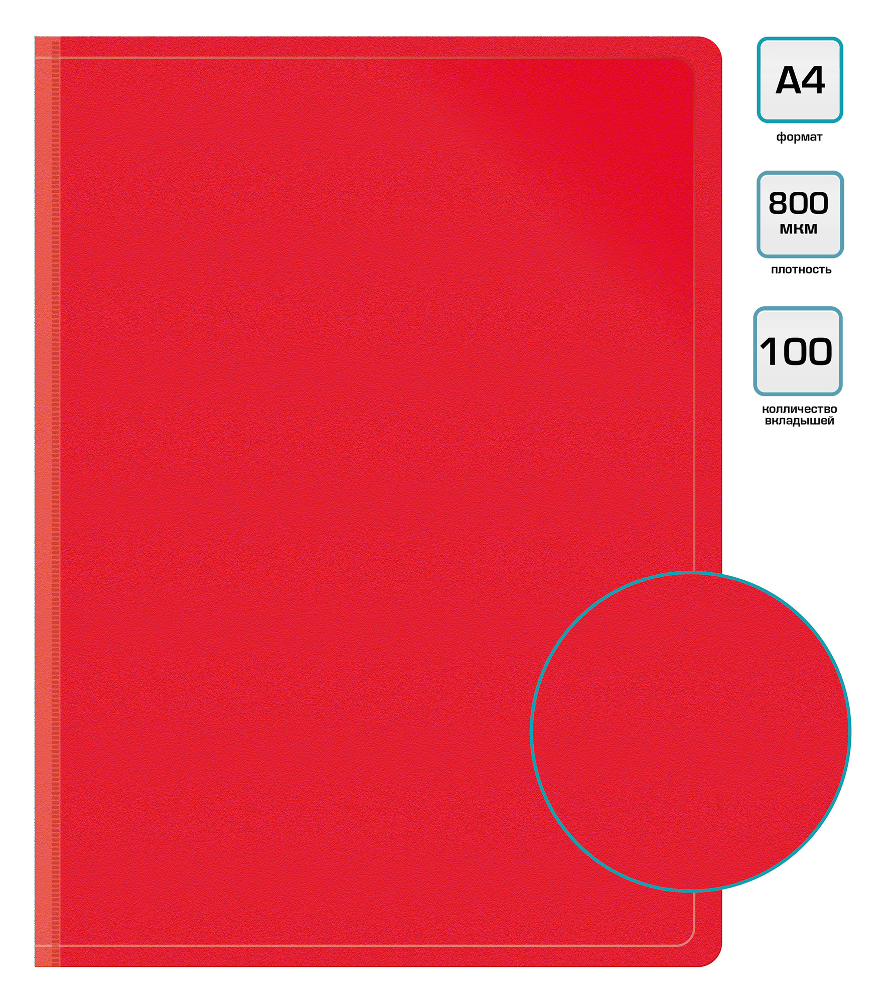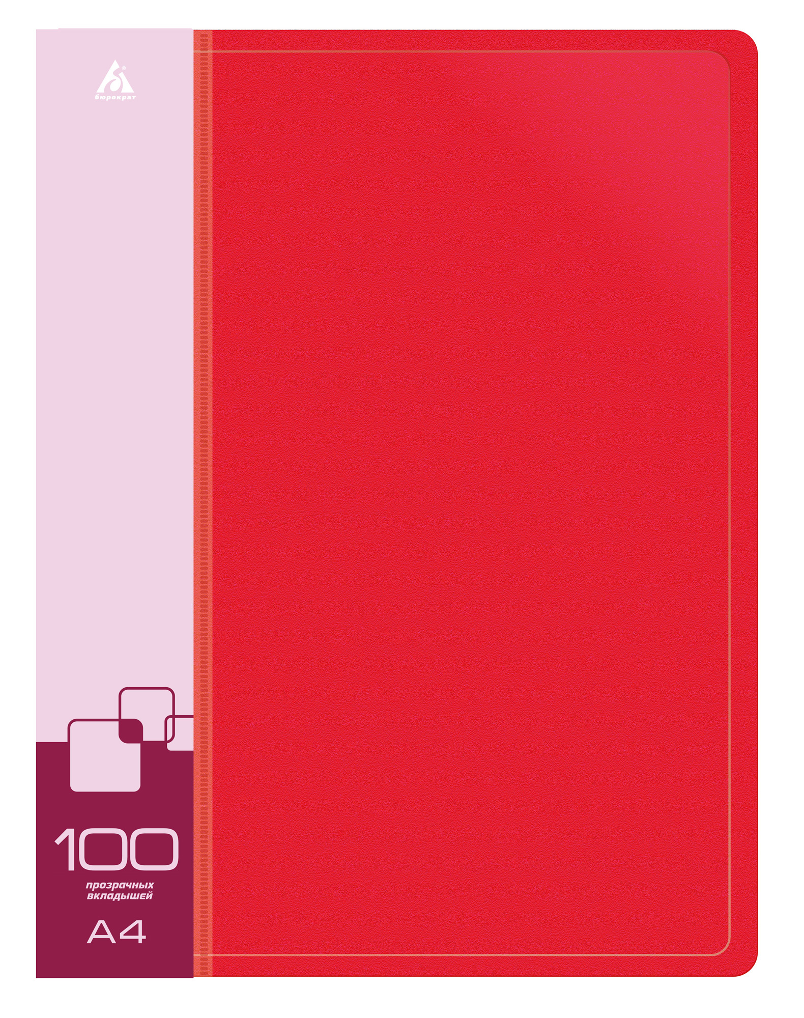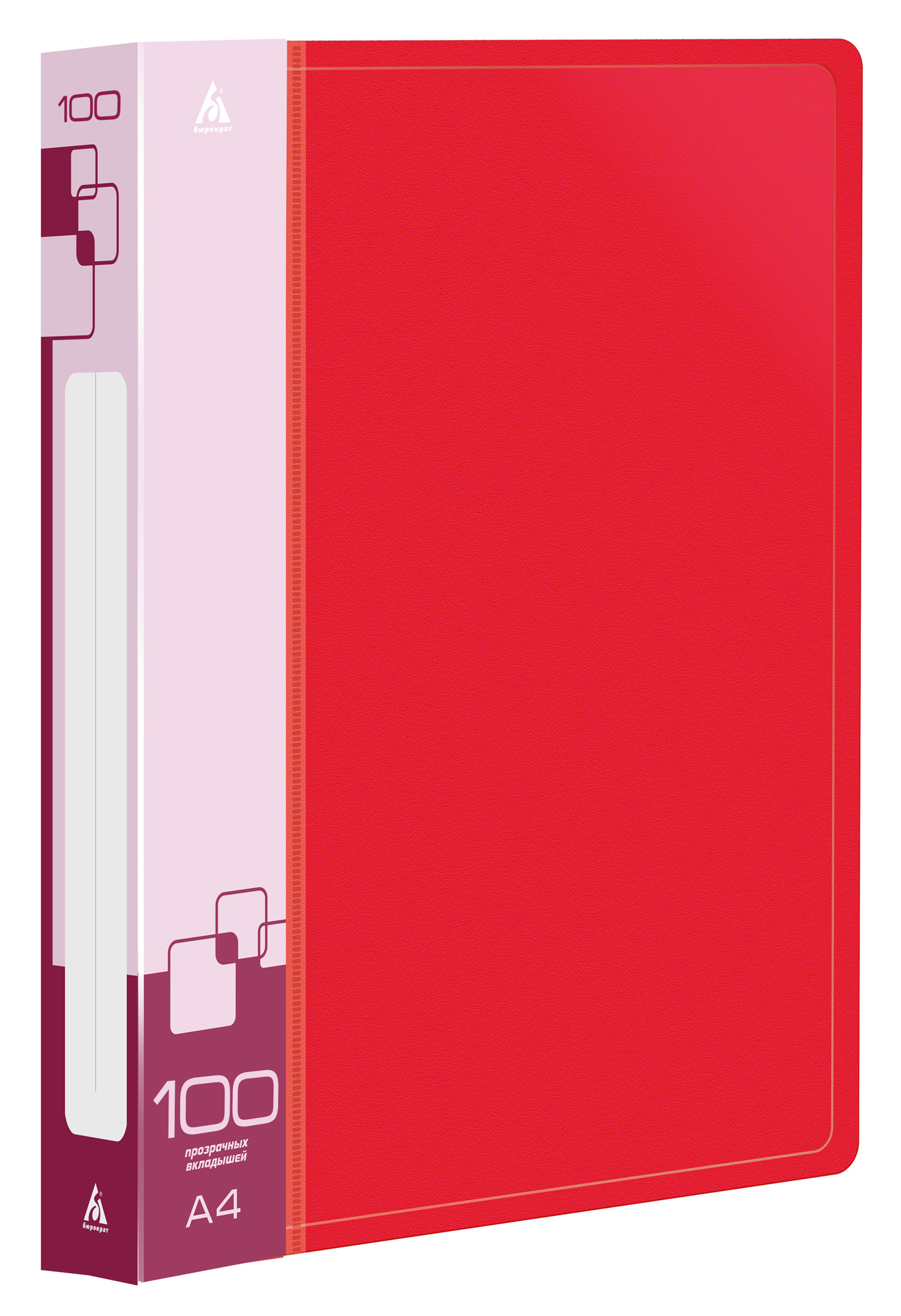 Папка с 100 прозр.вклад. Бюрократ -BPVN100RED A4 пластик 0.8мм торц.карм с бум. встав красный