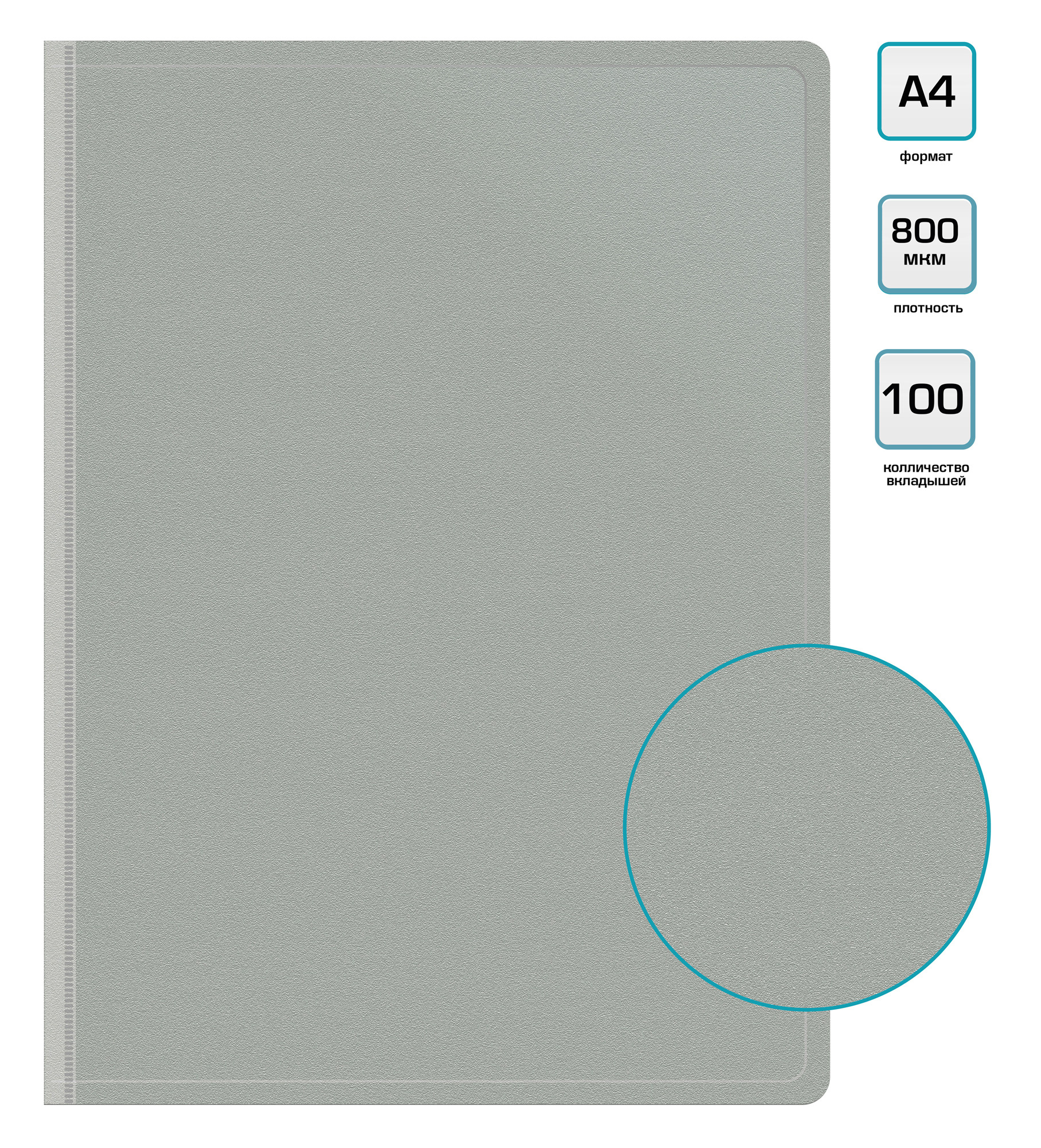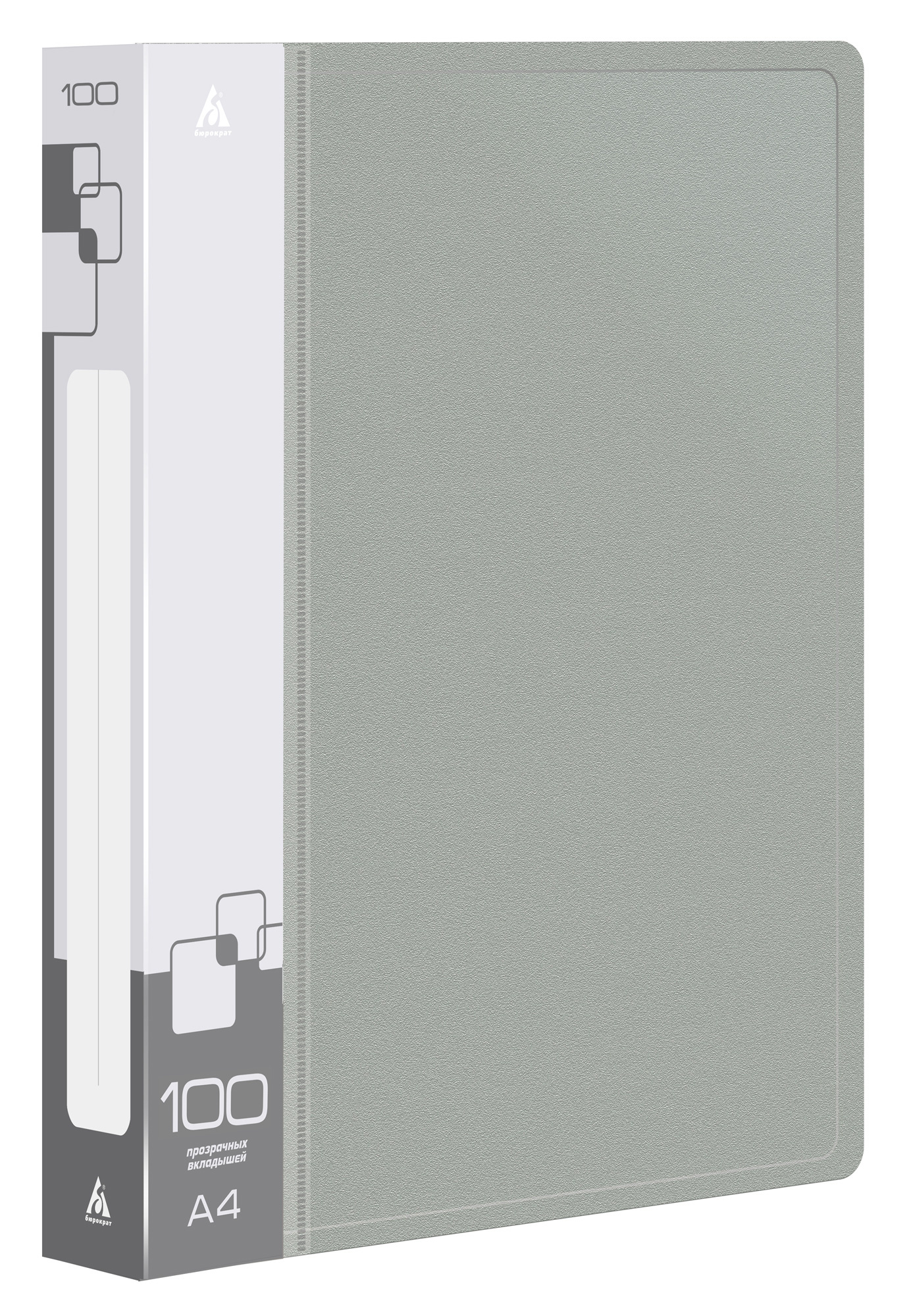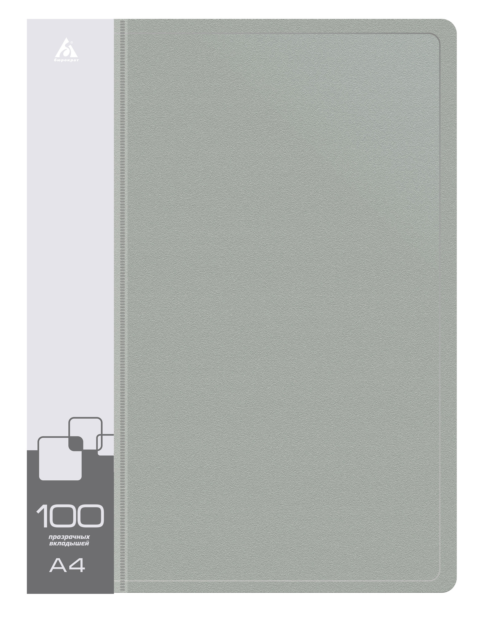 Папка с 100 прозр.вклад. Бюрократ -BPVN100GREY A4 пластик 0.8мм торц.карм с бум. встав серый