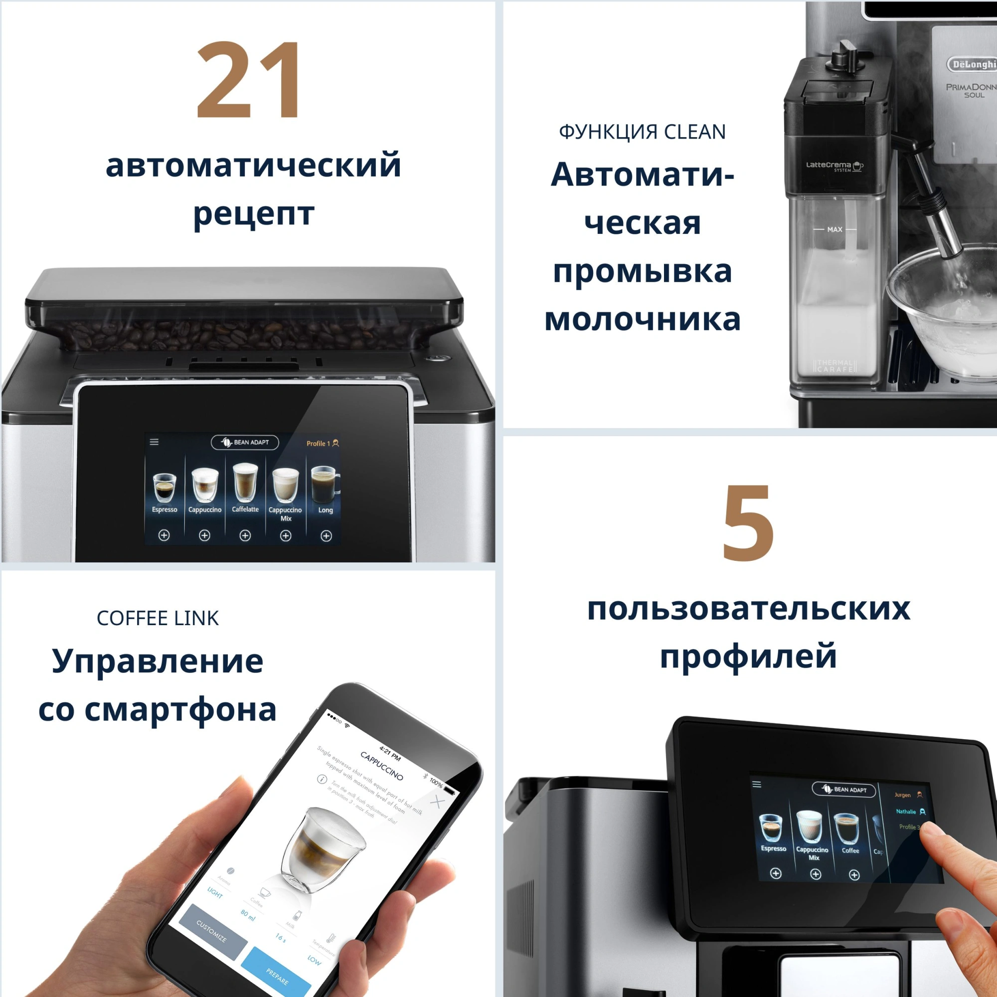 Единственная кофемашина, которая адаптируется под различные сорта кофейного зерна.Элегантная кофемашина Delonghi спроектирована ведущими итальянскими дизайнерами. Серебристый корпус выполнен из металла и устойчив к царапинам.