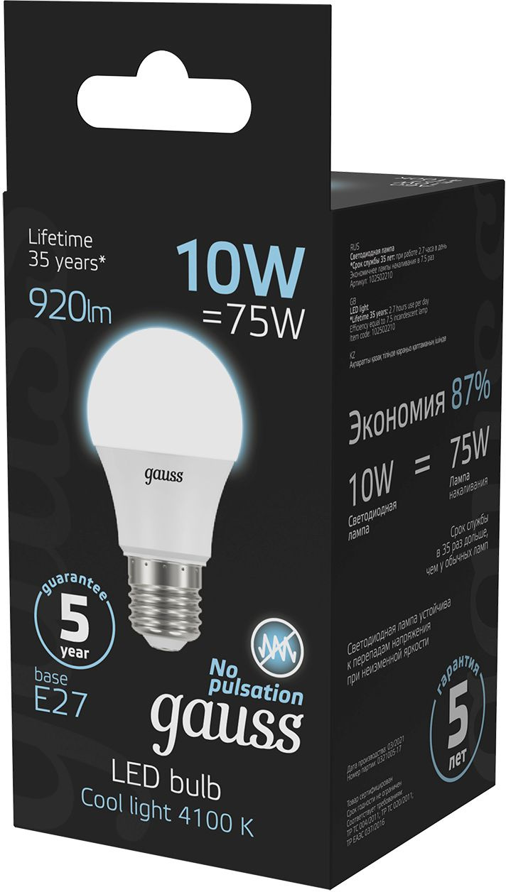 10Вт цок.:E27 шар 220B св.свеч.бел.нейт.