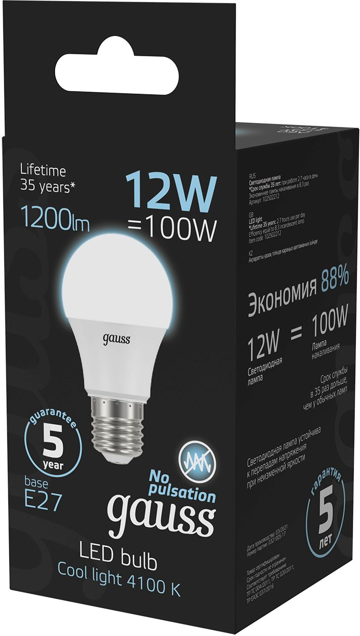 12Вт цок.:E27 шар 220B св.свеч.бел.нейт.