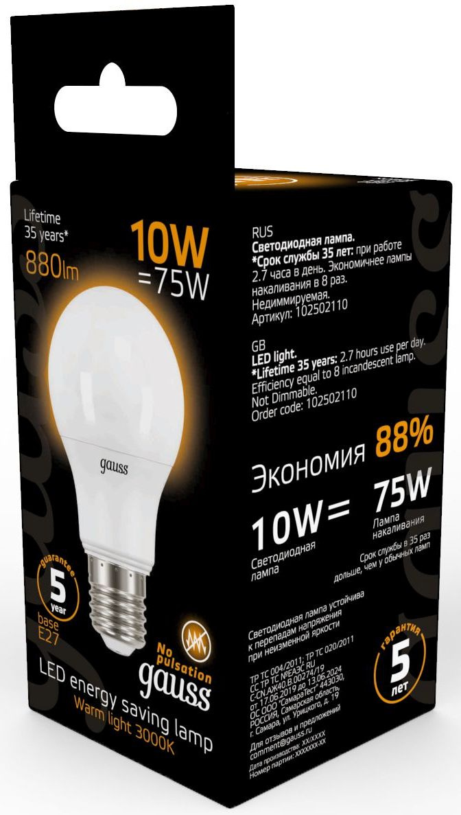 10Вт цок.:E27 шар 220B св.свеч.бел.теп.