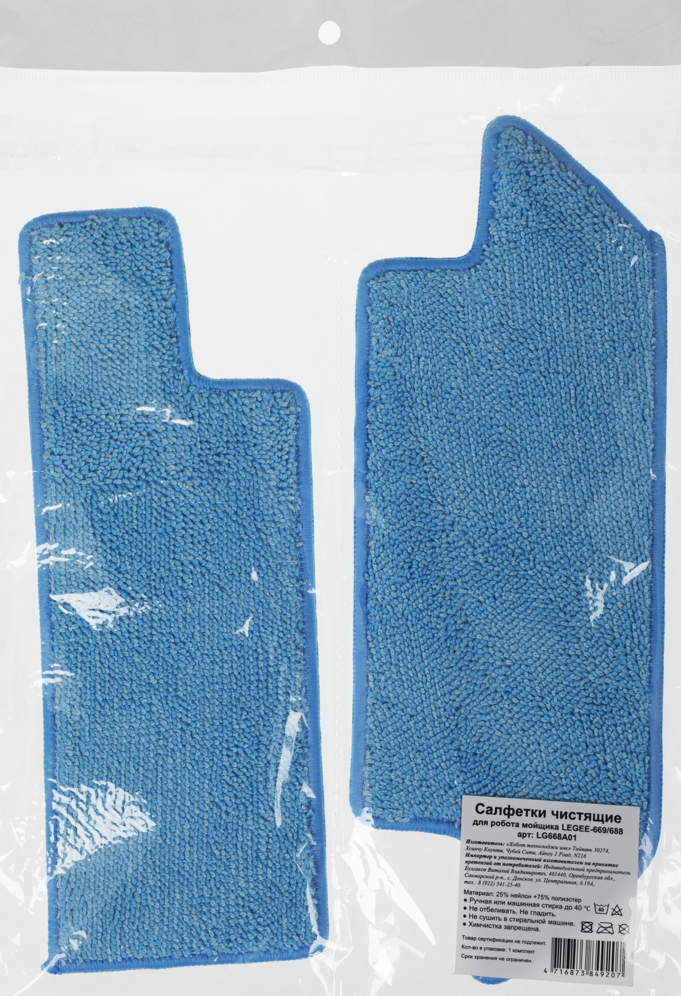 Чистящие салфетки для проведения сухой и влажной уборок роботами-пылесосами серии Legee. Первая салфетка применяется для сухой протирки пола. Она собирает мусор и пыль, которые не были втянуты вакуумным насосом. Вторая салфетка проводит влажную уборку, оттирая засохшие и жирные пятна.