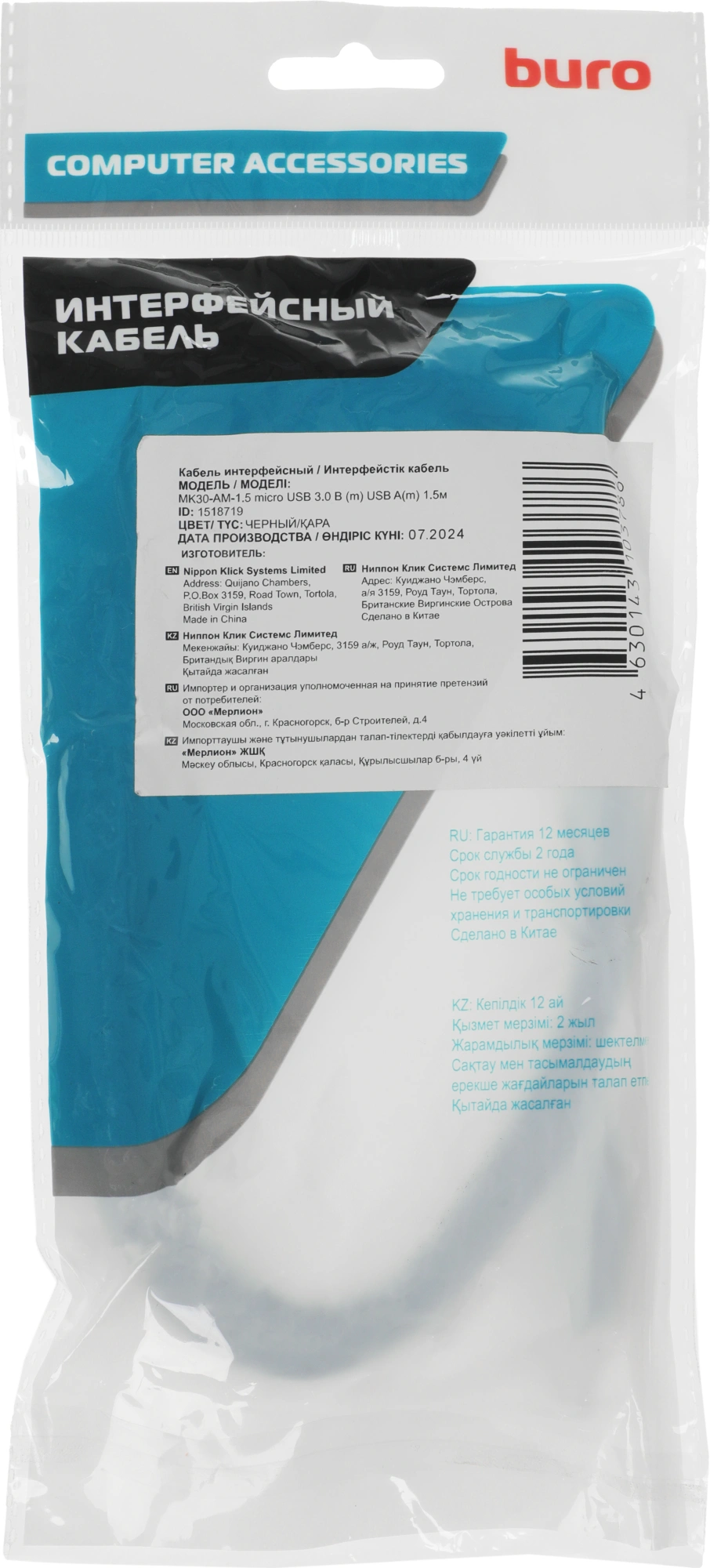 micro USB 3.0 B (m) USB A(m) 1.5м черный