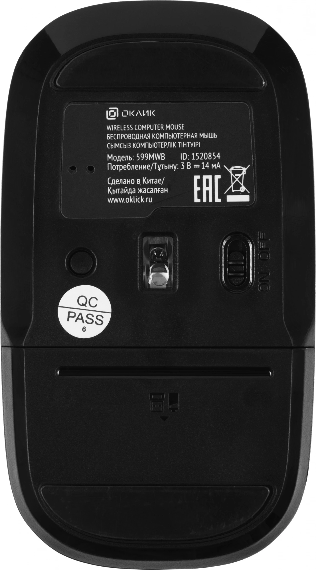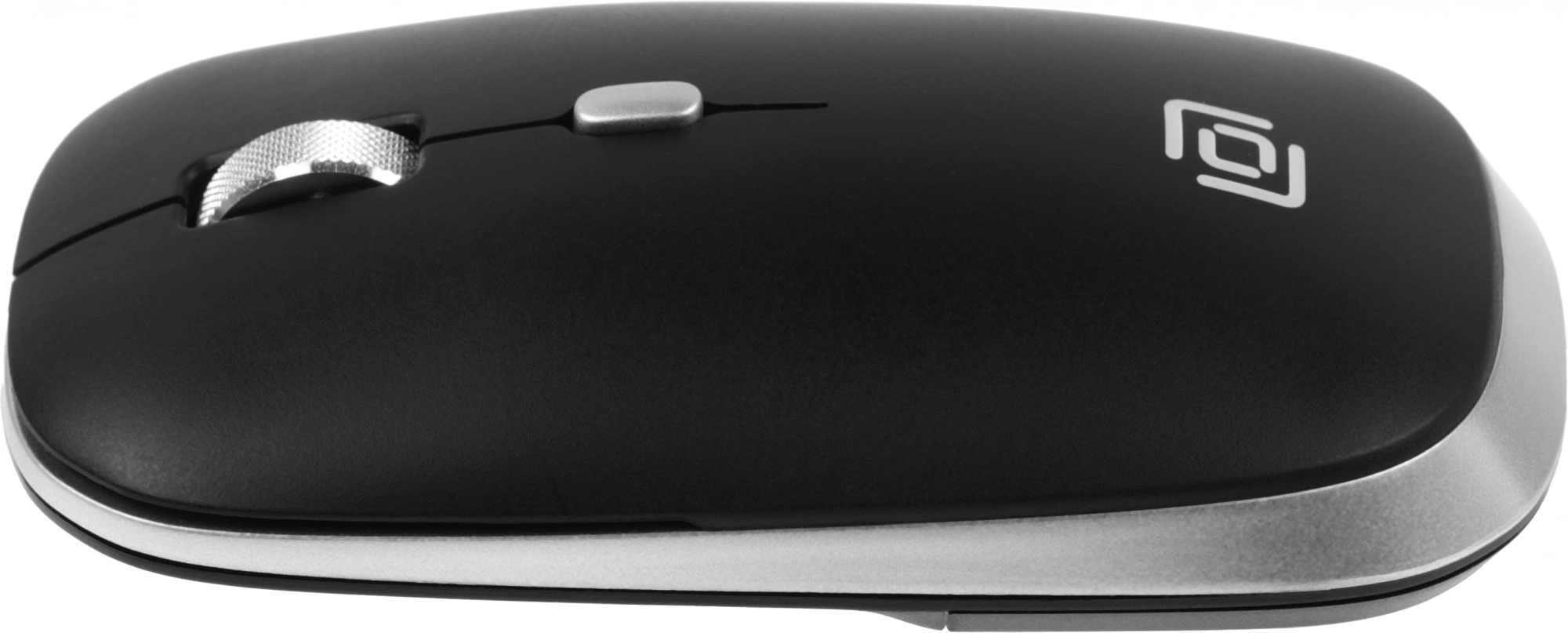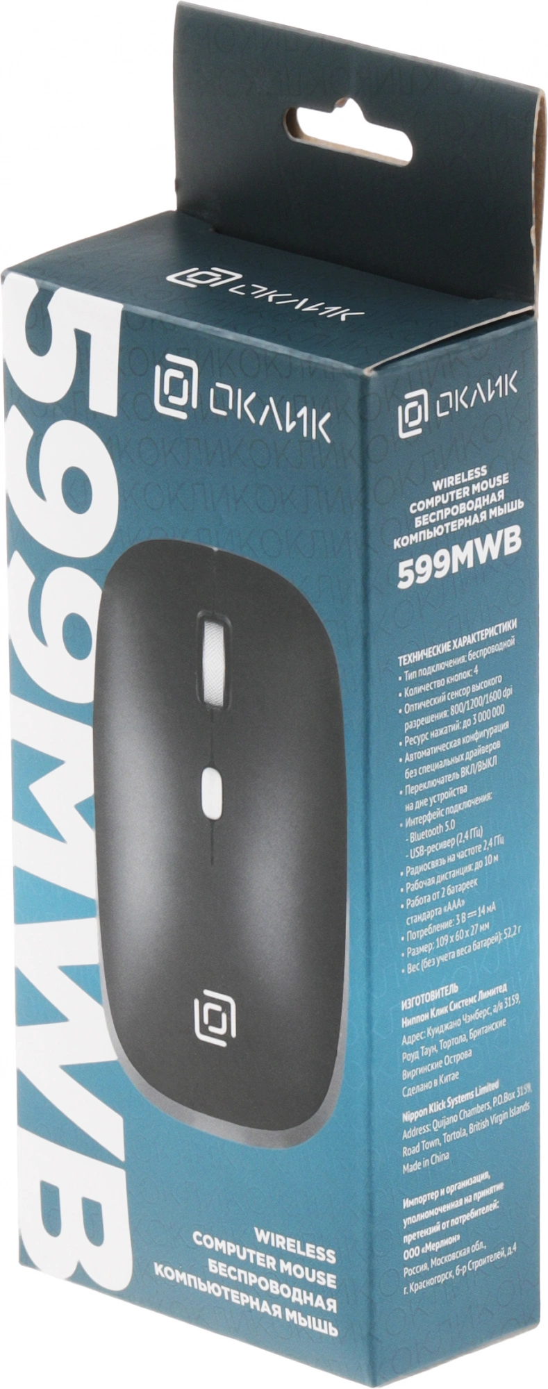 Беспроводная мышь Oklick 599MWB впечатляет стильным минималистичным дизайном, слегка приплюснутым корпусом и бесшумными кнопками. Она не занимает много места на столе, легко поместится в сумке или рюкзаке и подойдет тем, кто часто работает удаленно. Эргономика манипулятора на высоте: управлять девайсом можно и правой, и левой рукой. Модель оснащена 4 кнопками с ресурсом до 3 млн нажатий. Металлическое рифленое колесико приятно на ощупь и обеспечивает хорошее соприкосновение с пальцами. Матовая нескользящая поверхность помогает крепко держать мышь и всегда точно управлять курсором. Кнопка смены dpi позволяет выбирать из трех разных режимов разрешения оптического сенсора: 800, 1200 и 1600 dpi.