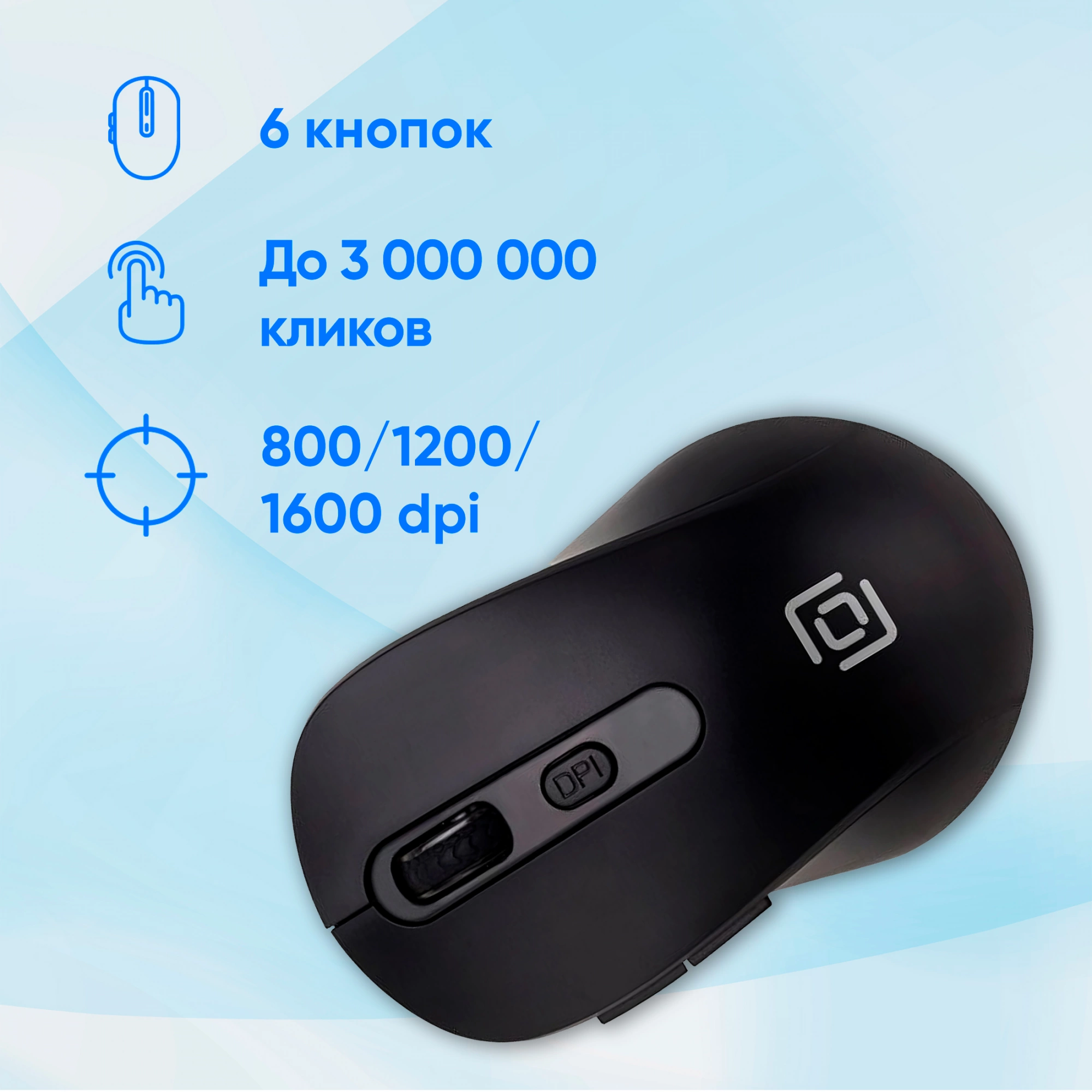 Универсальная беспроводная мышь Oklick 677MW подходит для работы дома, в офисе и во время поездок. Модель предназначена для правой руки, обладает стильным лаконичным дизайном и эргономичной конструкцией с 6 кнопками. Устройство удобно лежит в руке благодаря матовой нескользящей поверхности. Прорезиненное колесо прокрутки повышает точность управления манипулятором. Ресурс переключателей рассчитан на 3 млн нажатий. Кнопка смены dpi позволяет выбирать три разных режима разрешения оптического сенсора: 800, 1200 и 1600 dpi. Мышь пригодится для интернет-серфинга, работы с текстами, презентациями, фотографиями и изображениями. Возможность быстро переключать разрешение поможет более точно управлять курсором, когда это необходимо.