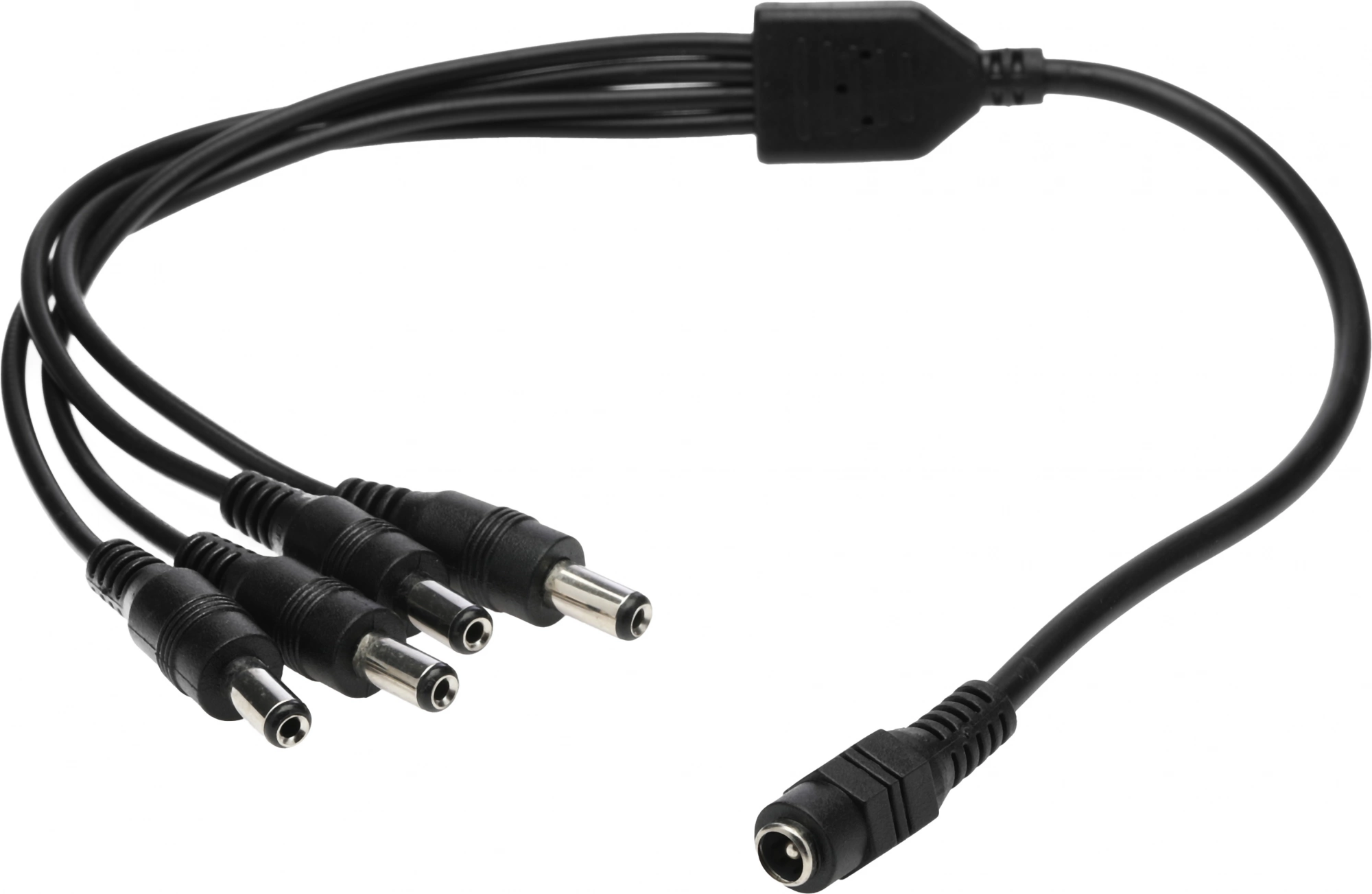 Соединительный кабель для разветвления линии питания (1 гнездо DC на 4 штекера DC). Разветвитель питания на 4 разъёма позволяет подключить к одному блоку питания несколько камер или микрофонов