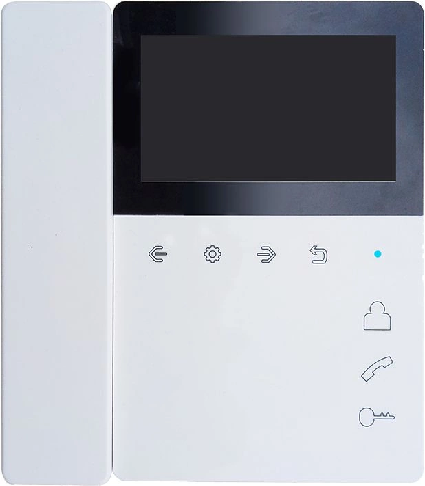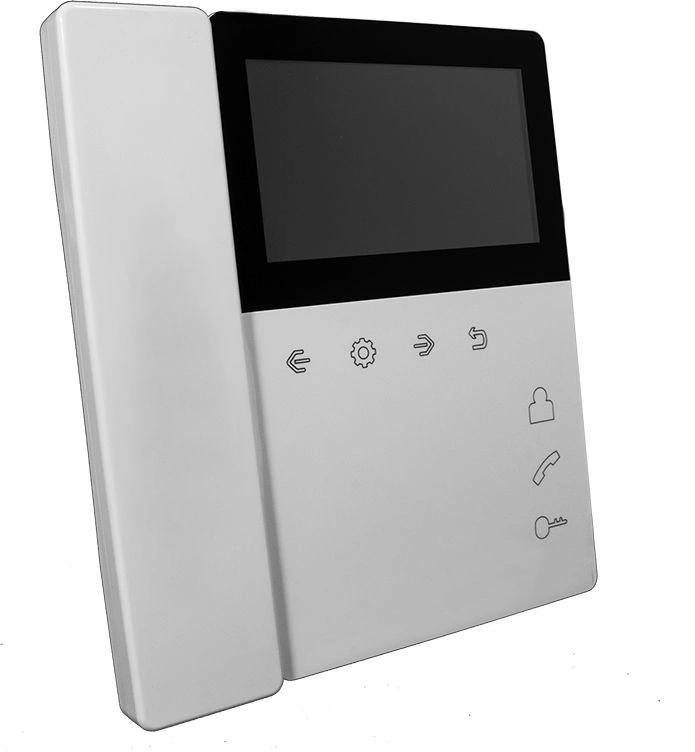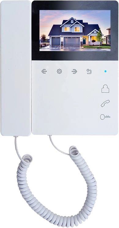 Монитор домофона с экраном 4,3 дюйма со встроенным блоком питания. Удобная в применении трубка на магните. Всё управление осуществляется сенсорными кнопками.
