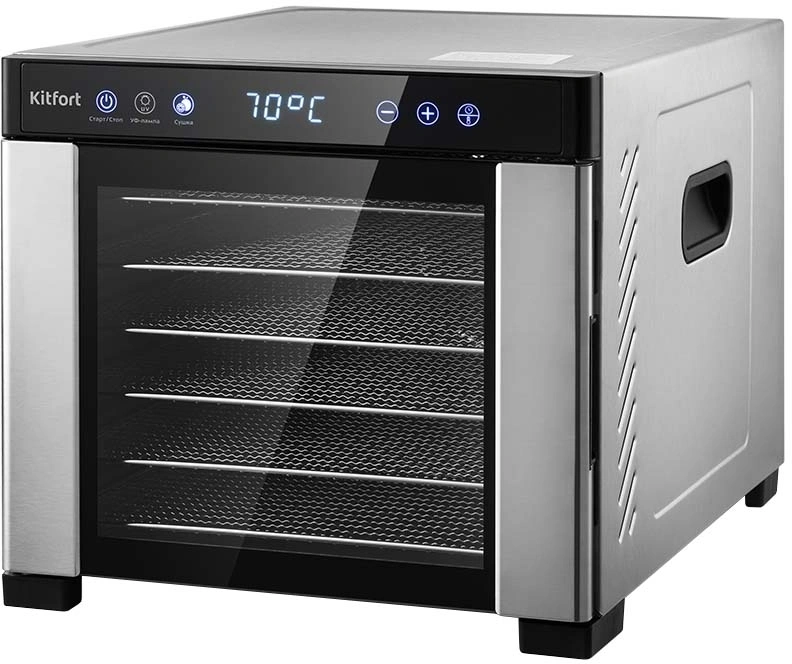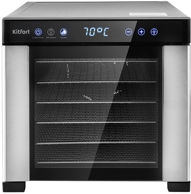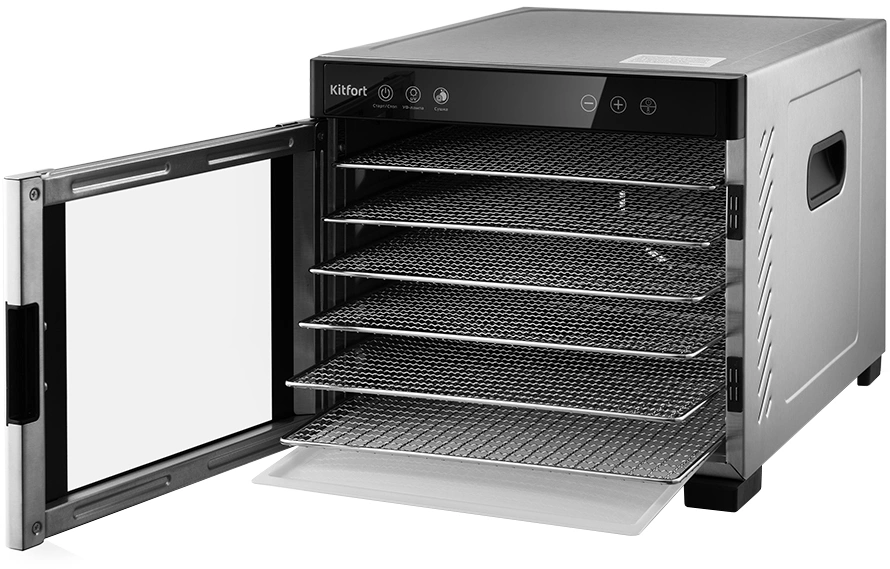 Вместительная электрическая сушилка Kitfort КТ-1916 предназначена для сушки овощей, фруктов, ягод, грибов, корнеплодов, трав и зелени, а также мяса и рыбы, хлеба. С помощью специальных сплошных поддонов можно готовить пастилу.