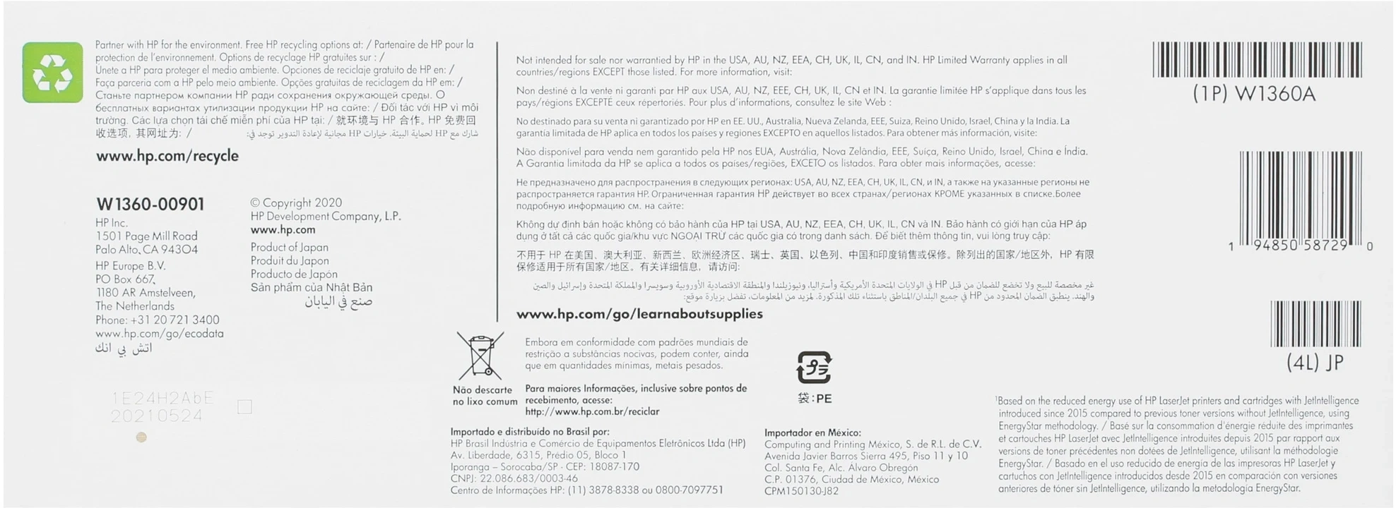 W1360A черный бар.в компл. (1150стр.) для HP LJ M2...