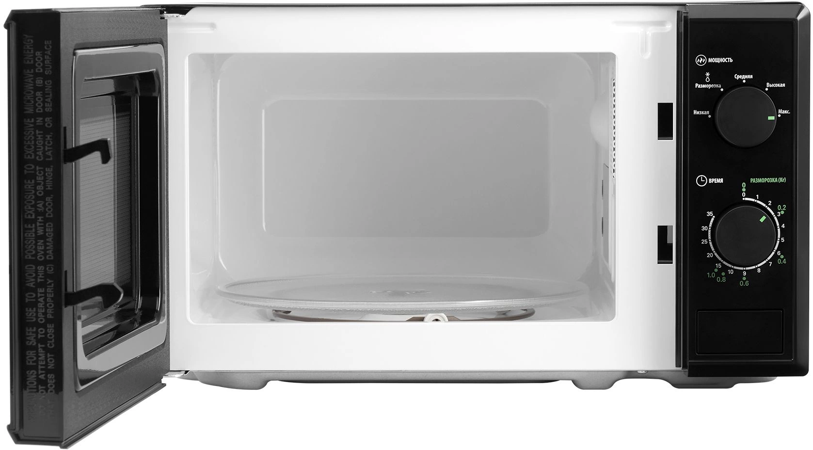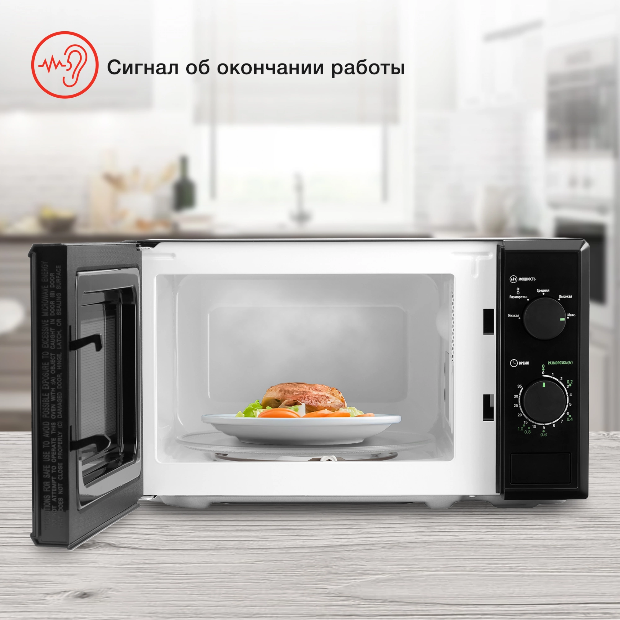 Микроволновая печь Starwind SWM5820 привлекает к себе внимание современным дизайном, корпус черного цвета подойдет для любого стиля интерьера. Оборудование имеет довольно простую конструкцию и компактные размеры. Использовать его можно как дома, так и в офисе. Бытовая техника поможет во время обеденного перерыва быстро подогреть еду. В домашних условиях микроволновую печь удобно использовать для размораживания продуктов, полноценного приготовления различных блюд. Мощность устройства составляет 700 Ватт. Внутренняя часть имеет объем в 20 литров, покрытие у нее из эмали, которая легко и быстро чистится. Управлять бытовым прибором необходимо с помощью поворотных рукояток, позволяющих установить нужно время нагрева и температуру.