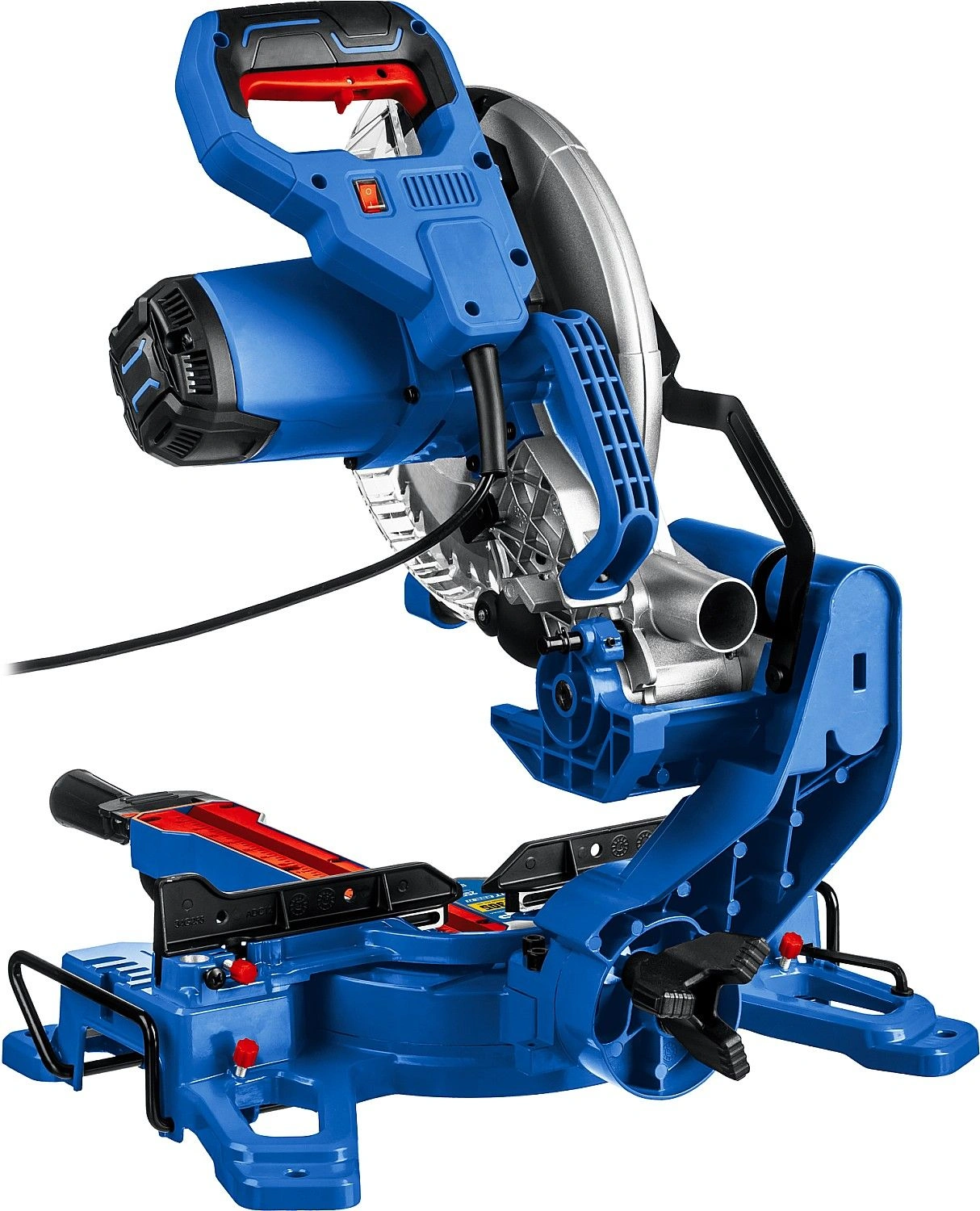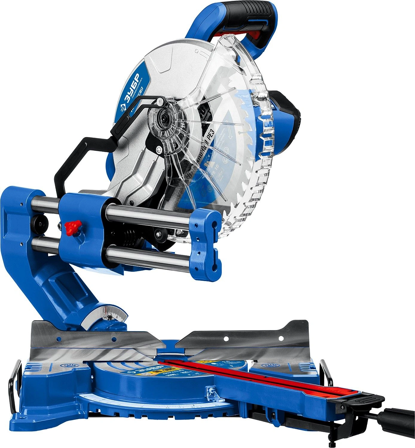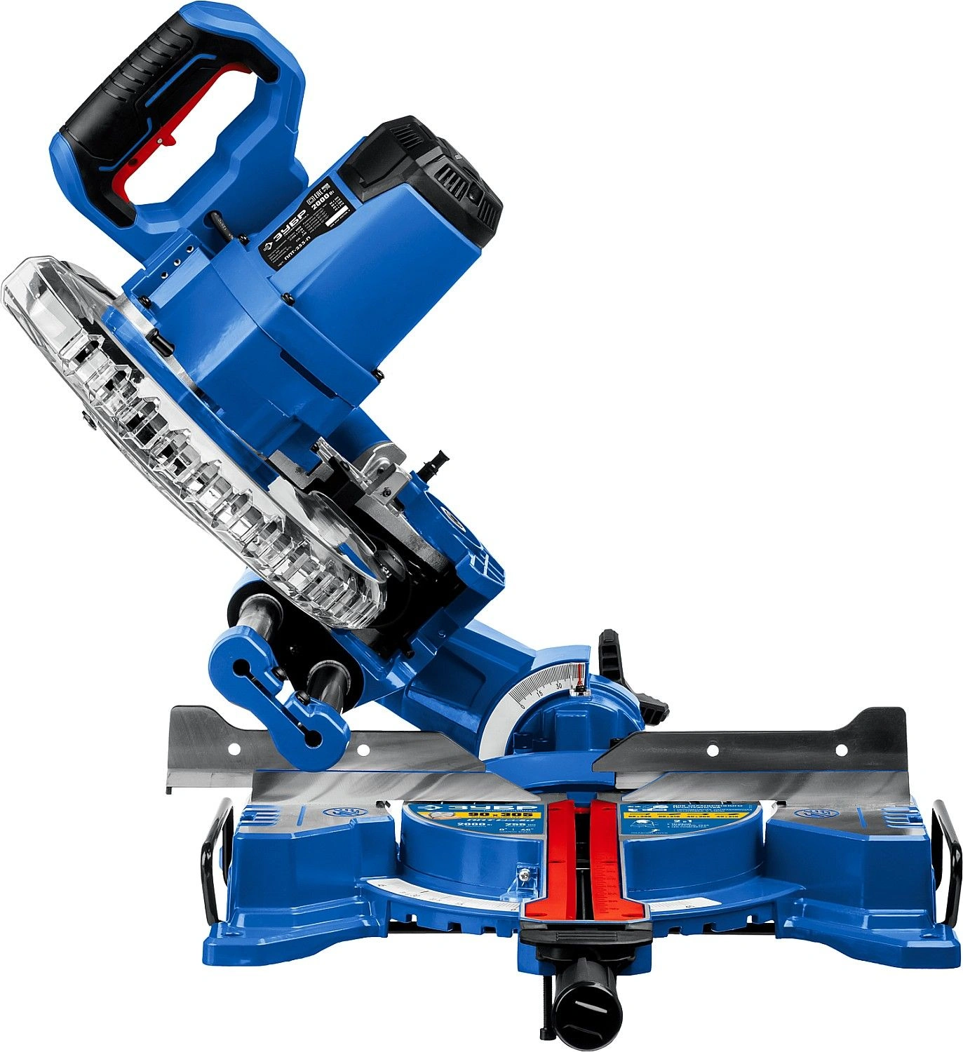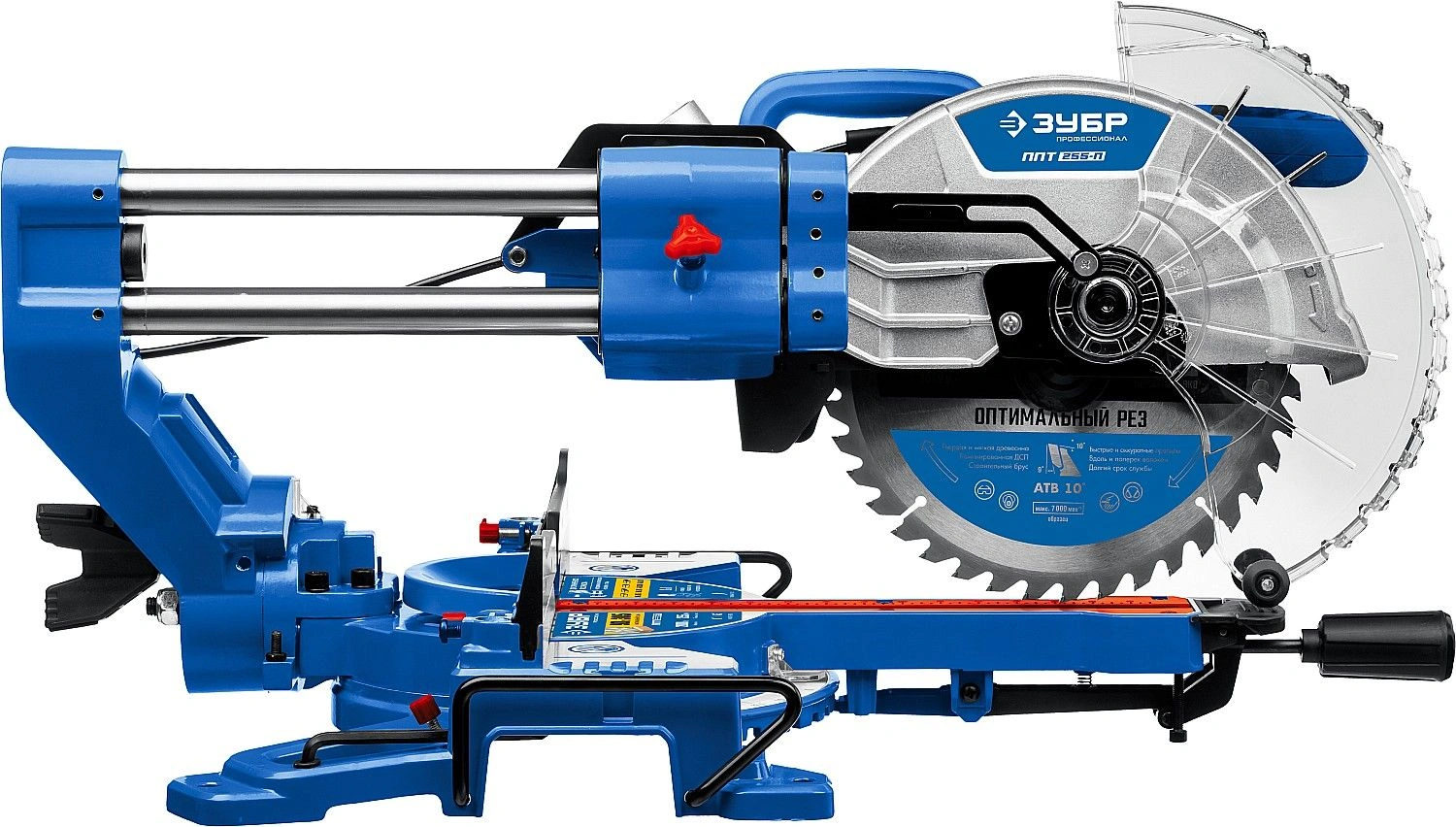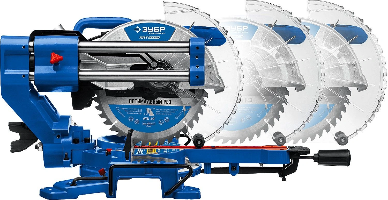 Высокая точность реза. Сдвижная консоль. Плавный пуск. Удобная регулировка наклона. LED-подсветка с указателем реза. Автоматически закрывающийся кожух. Удлинители стола.