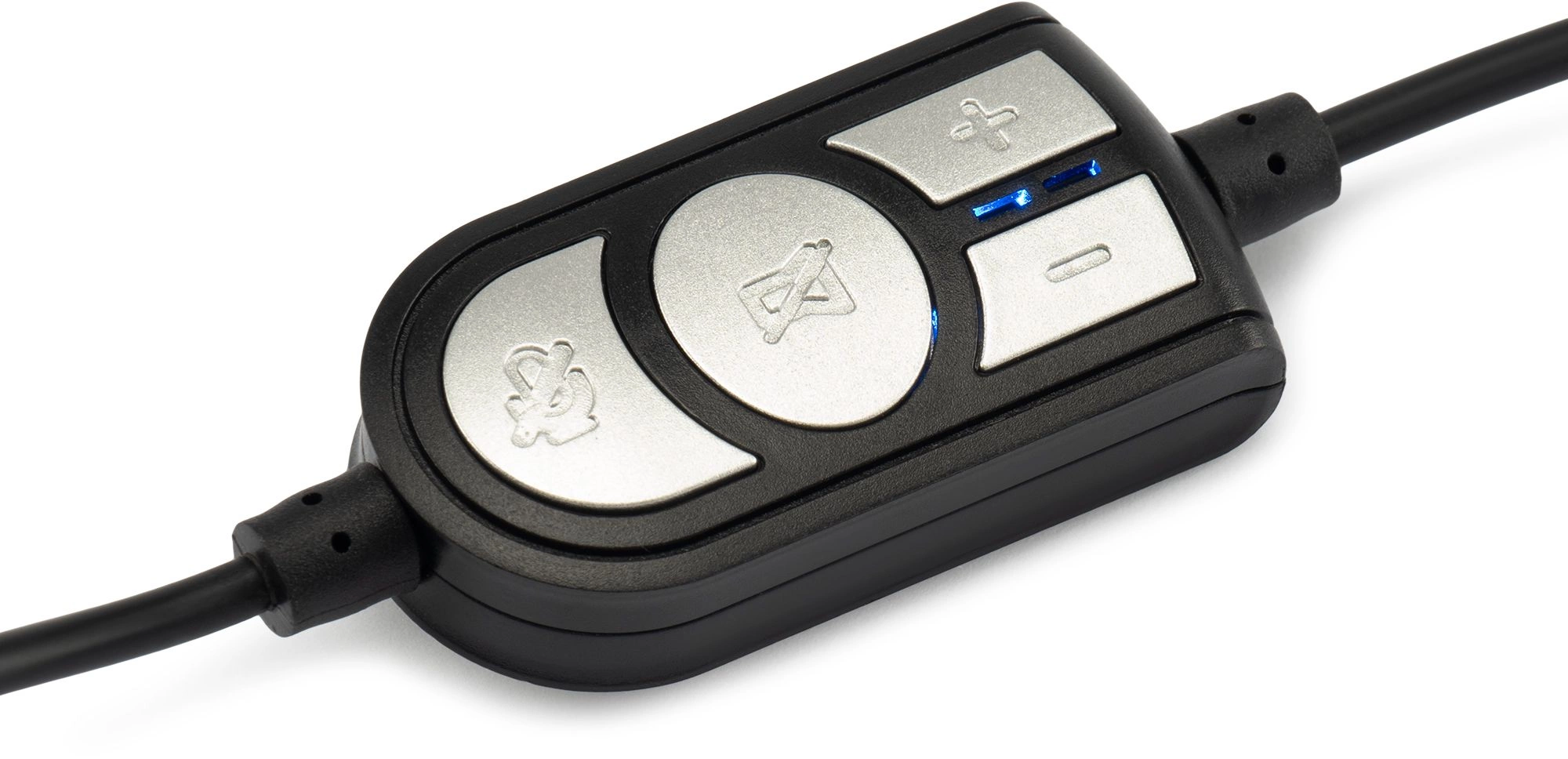 Длинный 1,8-метровый USB-кабель удобно подключается к системному блоку. На проводе расположен функциональный контроллер, который позволяет регулировать громкость и отключать микрофон.