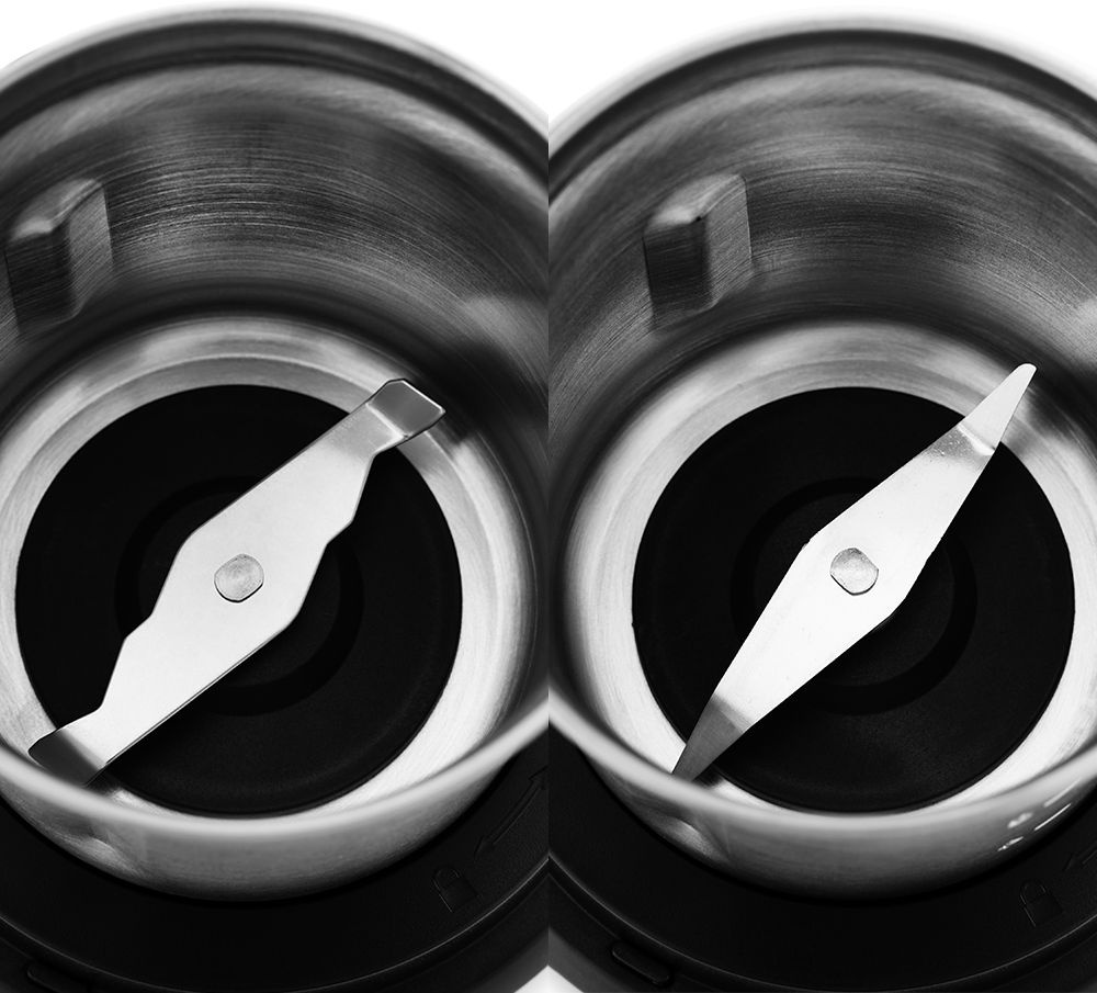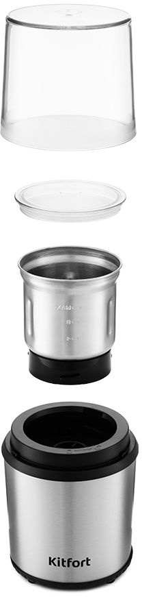 Кофемолка включается простым нажатием на верхнюю крышку. Степень помола зависит от продолжительности работы. Помимо верхней прозрачной крышки в комплектацию входят прозрачные крышки для каждой чаши с силиконовым уплотнителем.