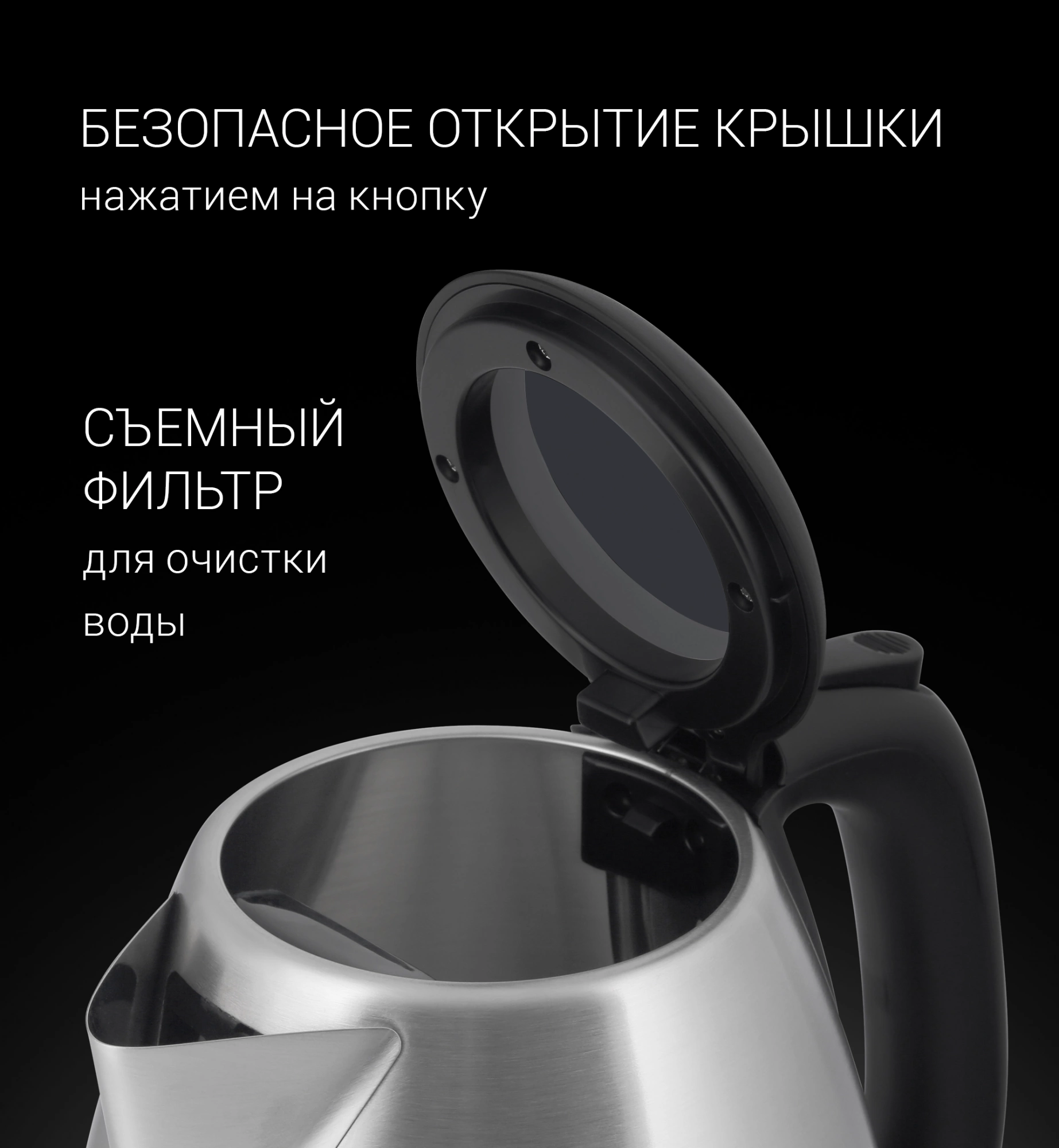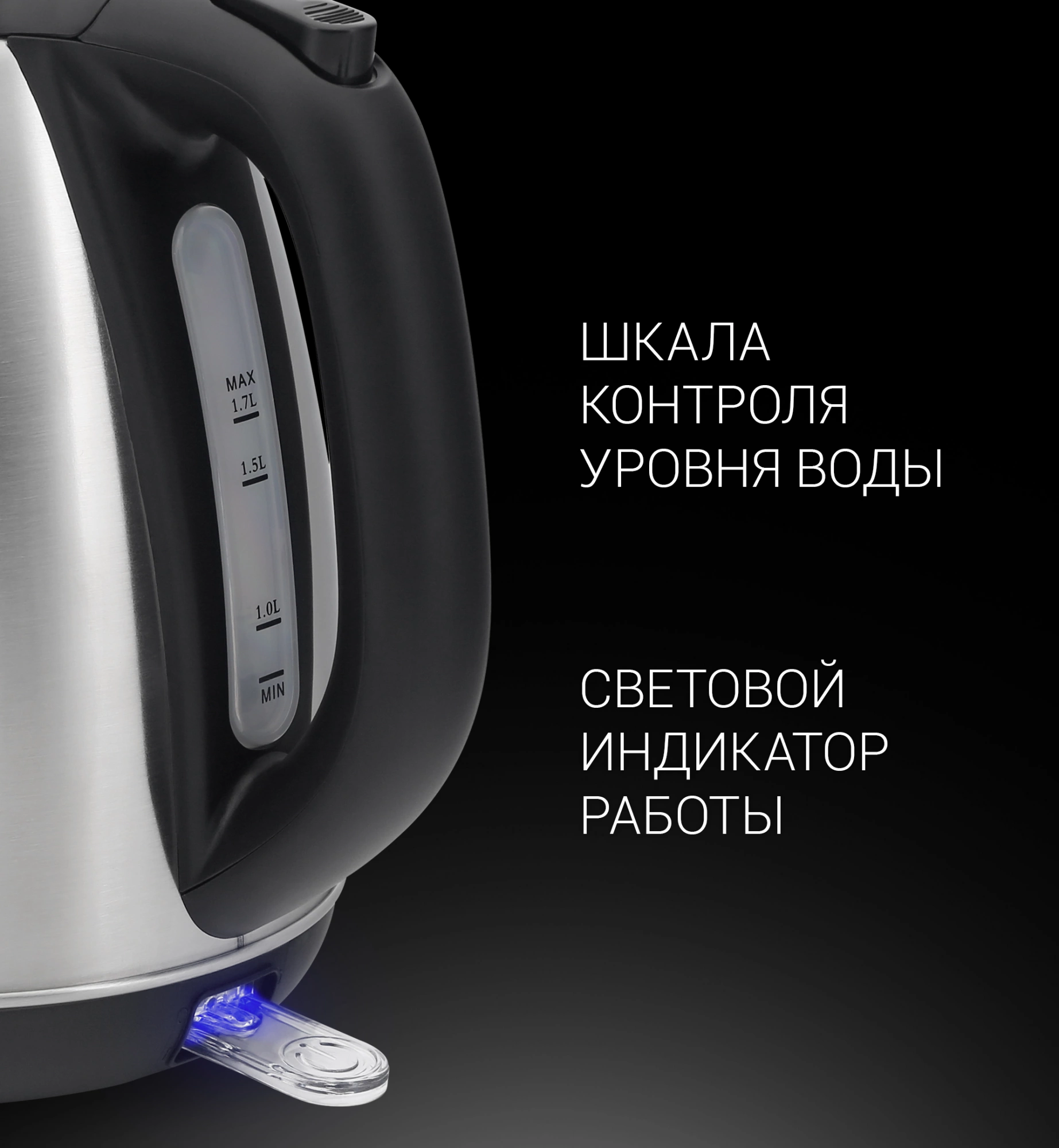 1.7л. 2200Вт нержавеющая сталь/черный корпус: мета...