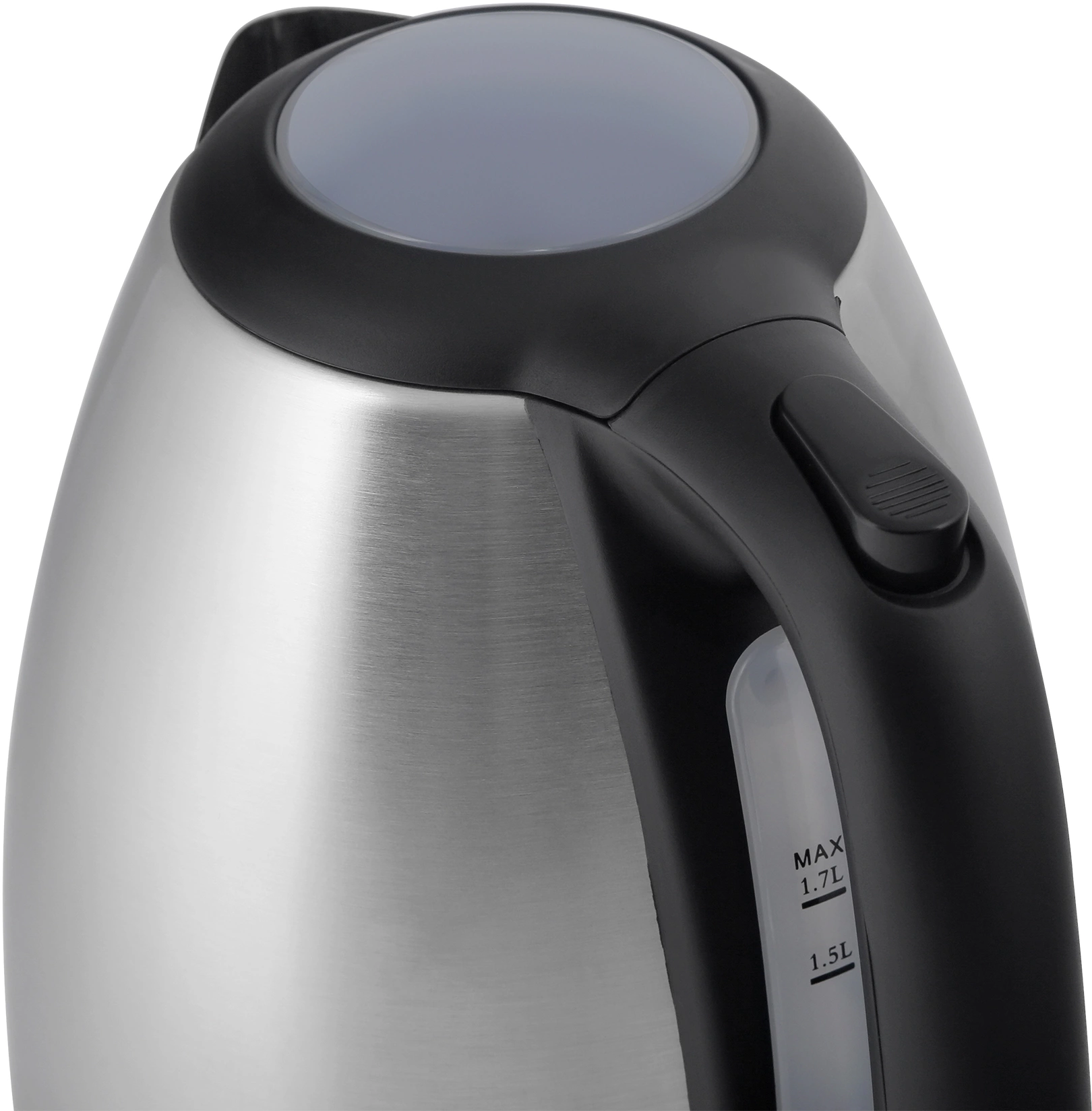 Вмещает в себя 1,7 литра воды и за счет высокой мощности способен вскипятить воду за несколько минут. Такого объема хватит, чтобы напоить чаем всю семью или большую компанию. Скрытый нагревательный элемент не только ускоряет нагрев воды, но и облегчает уход за прибором.