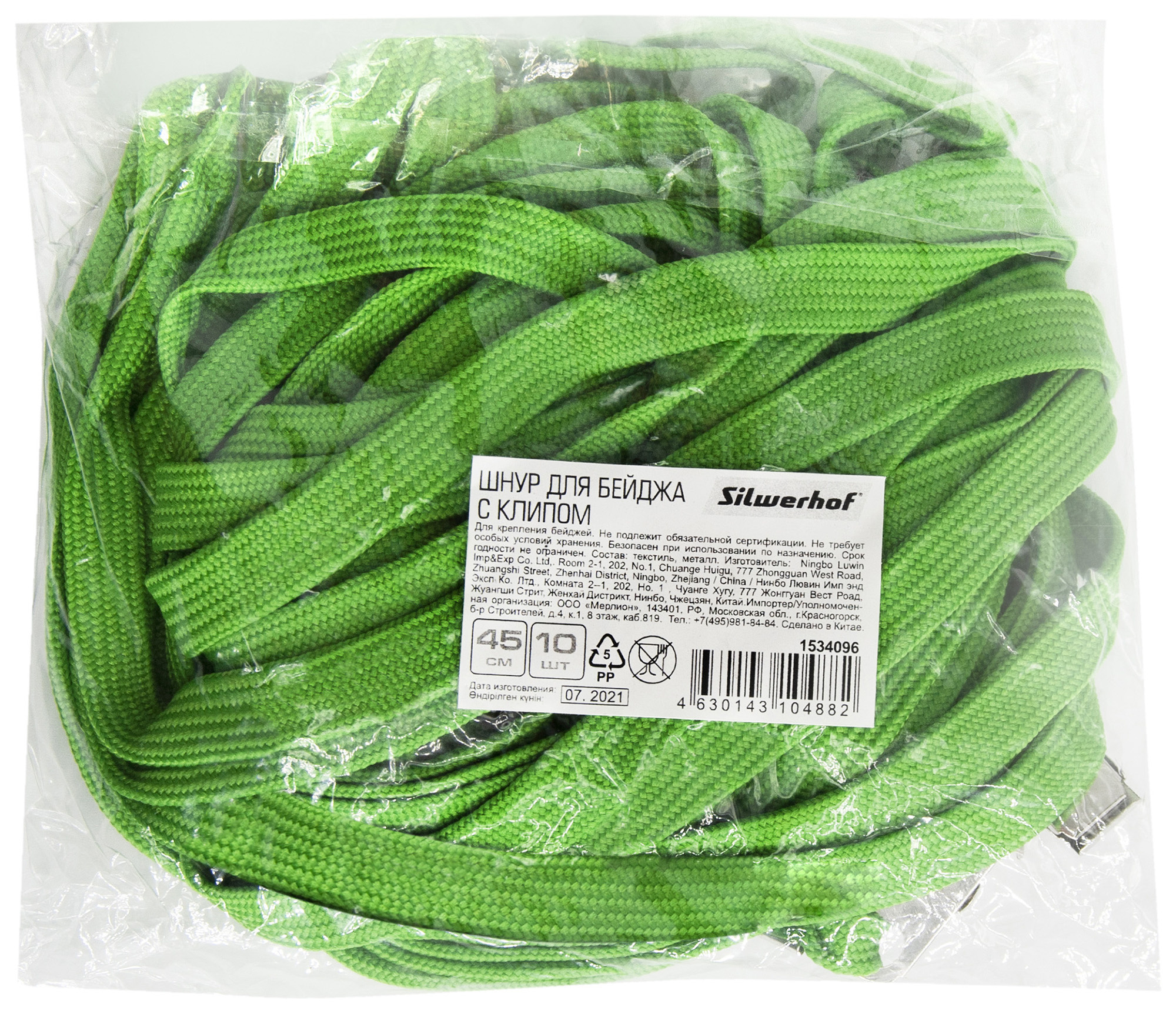 Держатель для бейджа Silwerhof 45см клип текстиль зеленый (упак.:10шт)