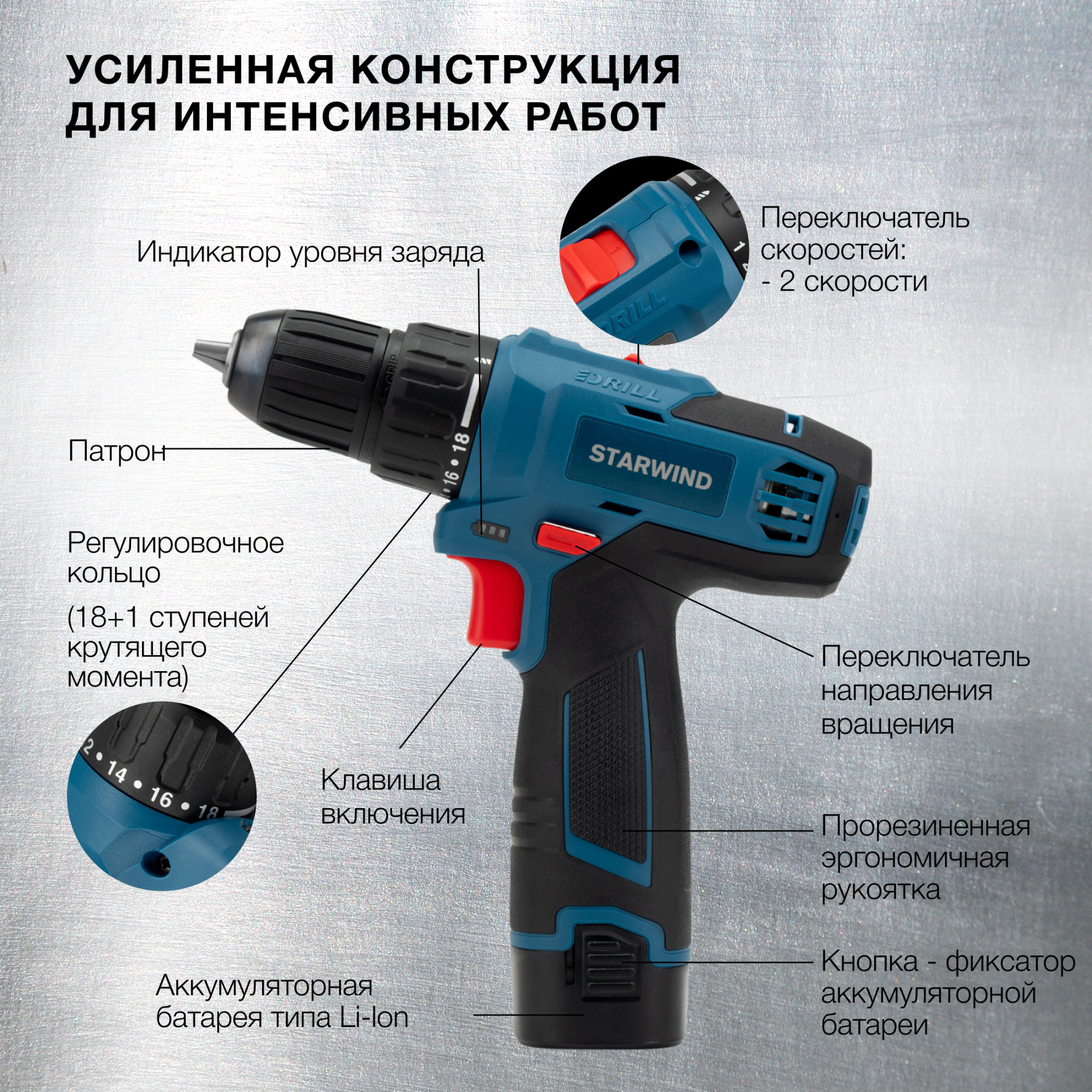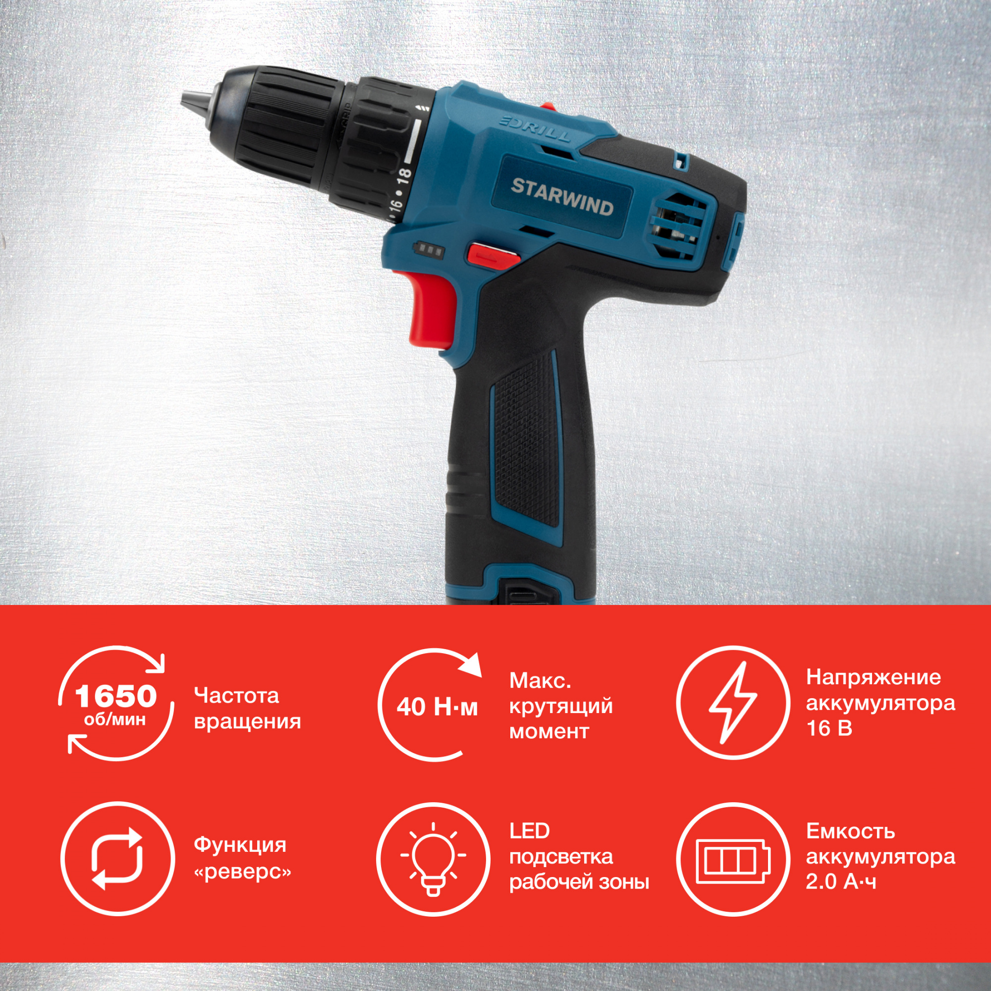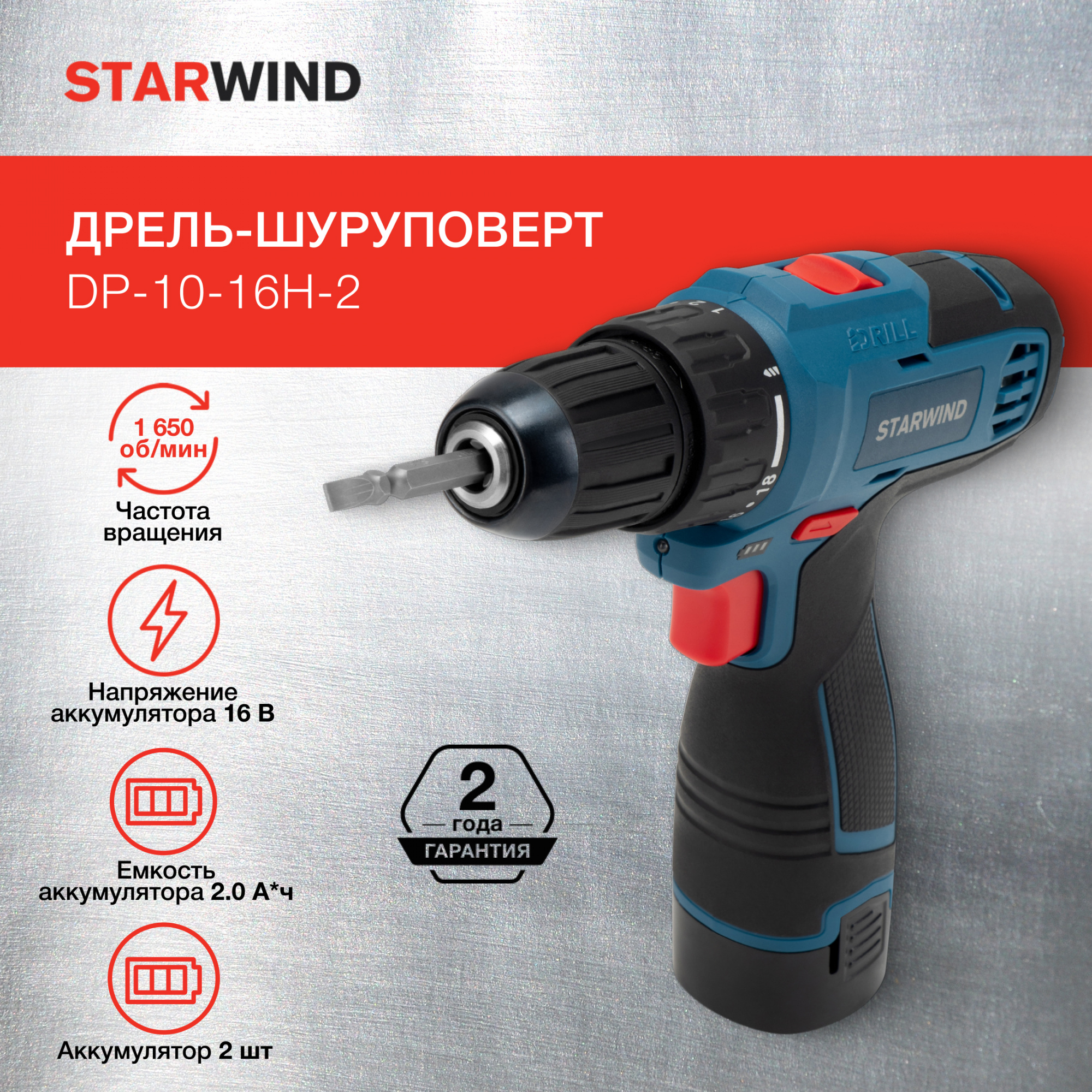 Дрель-шуруповерт StarWind DP-10-16H-2 представляет собой многофункциональное устройство для ремонтных и строительных работ в домашних условиях. Два аккумулятора значительно продлевают время автономной работы. Дрель достаточно комфортно держать в руке благодаря эргономичной ручке. Встроенный фонарик позволяет производить манипуляции в труднодоступных местах и в условиях недостаточной освещенности. Корпус изготовлен из ударопрочного пластика. Устройство отличается превосходным качеством сборки и очень удобно в процессе эксплуатации, не вызывает утомления даже при длительном использовании.
