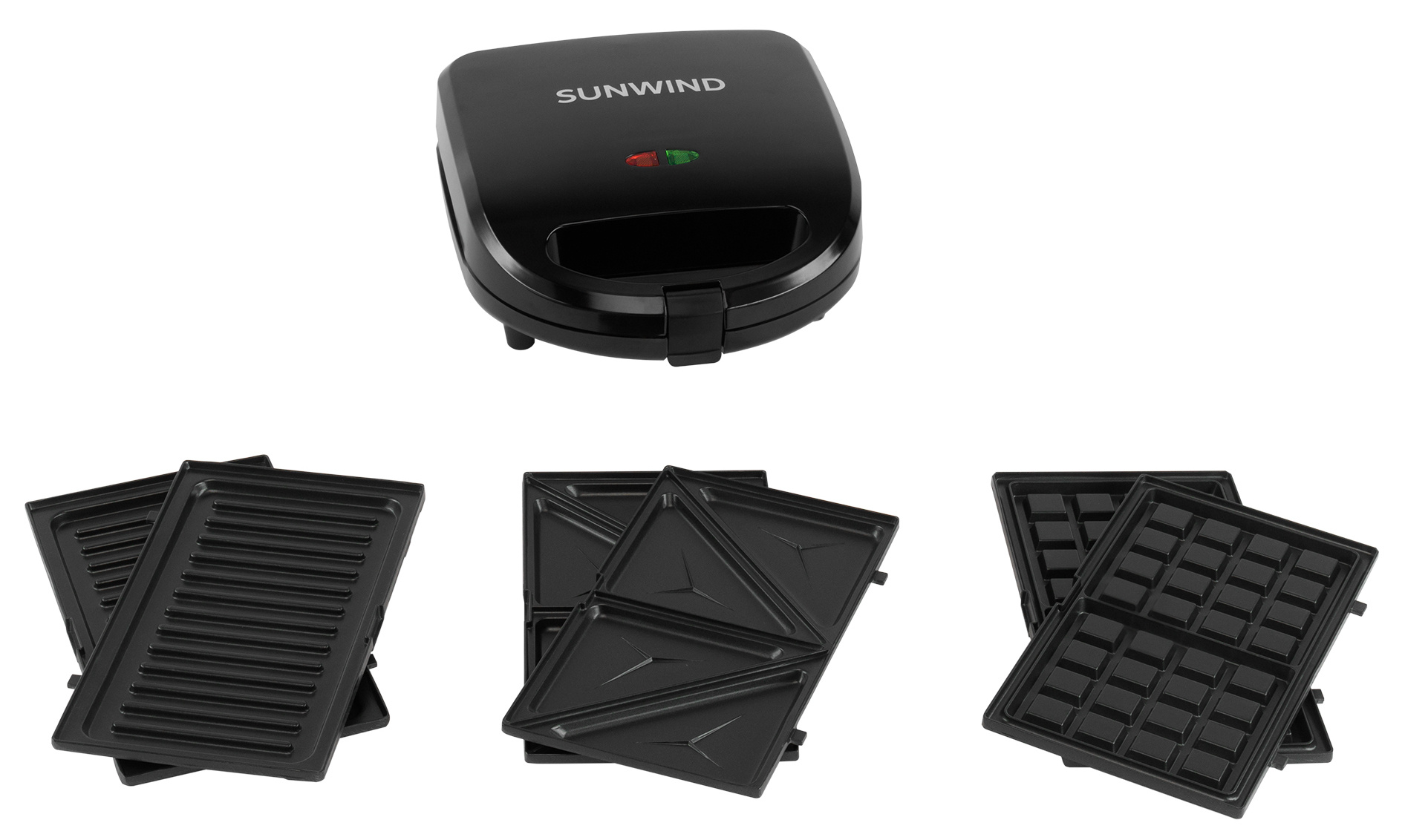 Сэндвичница Sunwind SUN-SM-41 черного цвета обладает мощностью в 750 Ватт, чего вполне достаточно для создания быстрых завтраков. У бытовой техники есть три сменные формы, которые позволяют приготовить различные блюда. Все они имеют антипригарное покрытие, что очень удобно. К преимуществам сэндвичницы следует отнести наличие функции гриля. В пластинах имеется по 4 отделения для бутербродов и по 2 – для вафель. Тип управления у бытовой техники механический. На передней панели предусмотрено несколько кнопок. Техника оснащается ножками с противоскользящим покрытием.