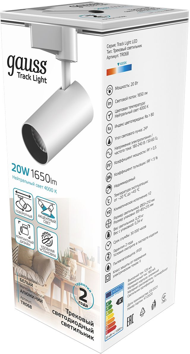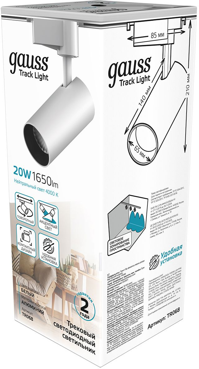 Трековый светильник GAUSS R068 - это отличное решение для освещения жилых и коммерческих помещений. Трековые светильники Gauss обеспечивают широкие возможности для создания различных световых схем. А широкий спектр возможностей регулировки делают устройство универсальным.