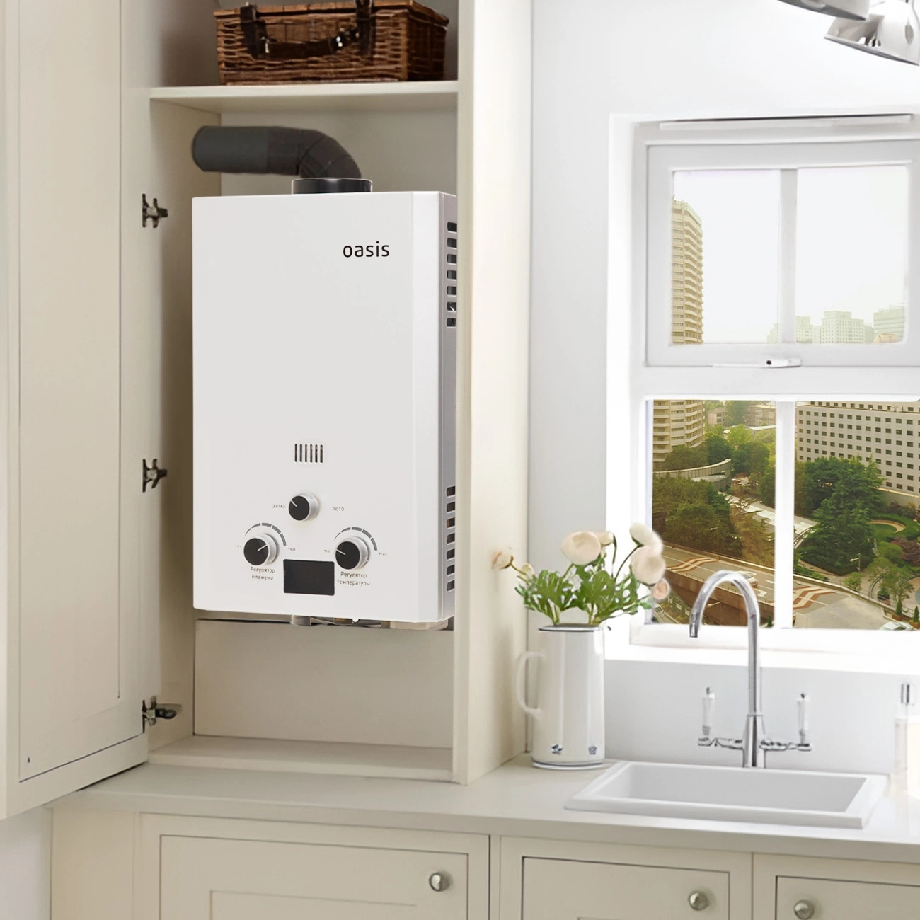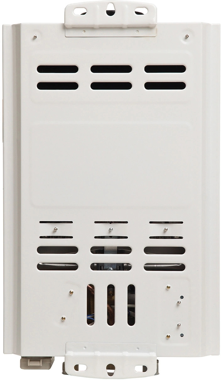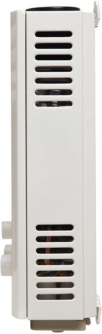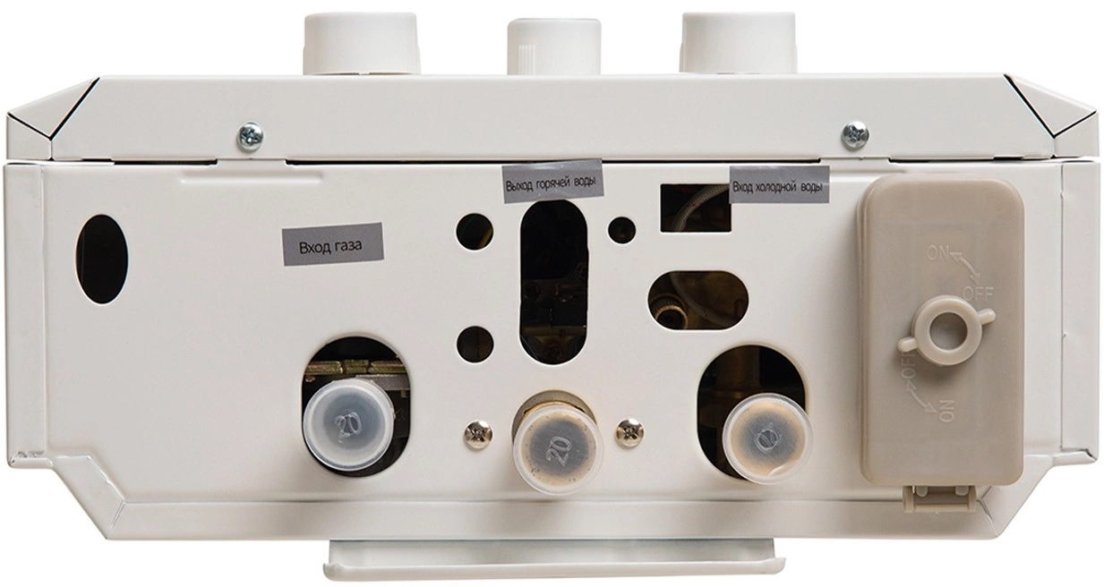ЖК блок индикации температуры горячей воды, переключатель «зима-лето» для плавной регулировки горячей воды в теплое время года и экономии газа до 40-50%, высокий КПД (более 90%).