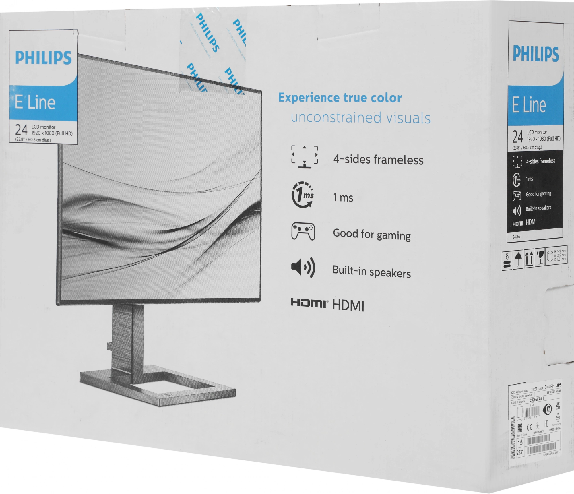 монитор с подставкой, кабель HDMI, кабель питания, документация