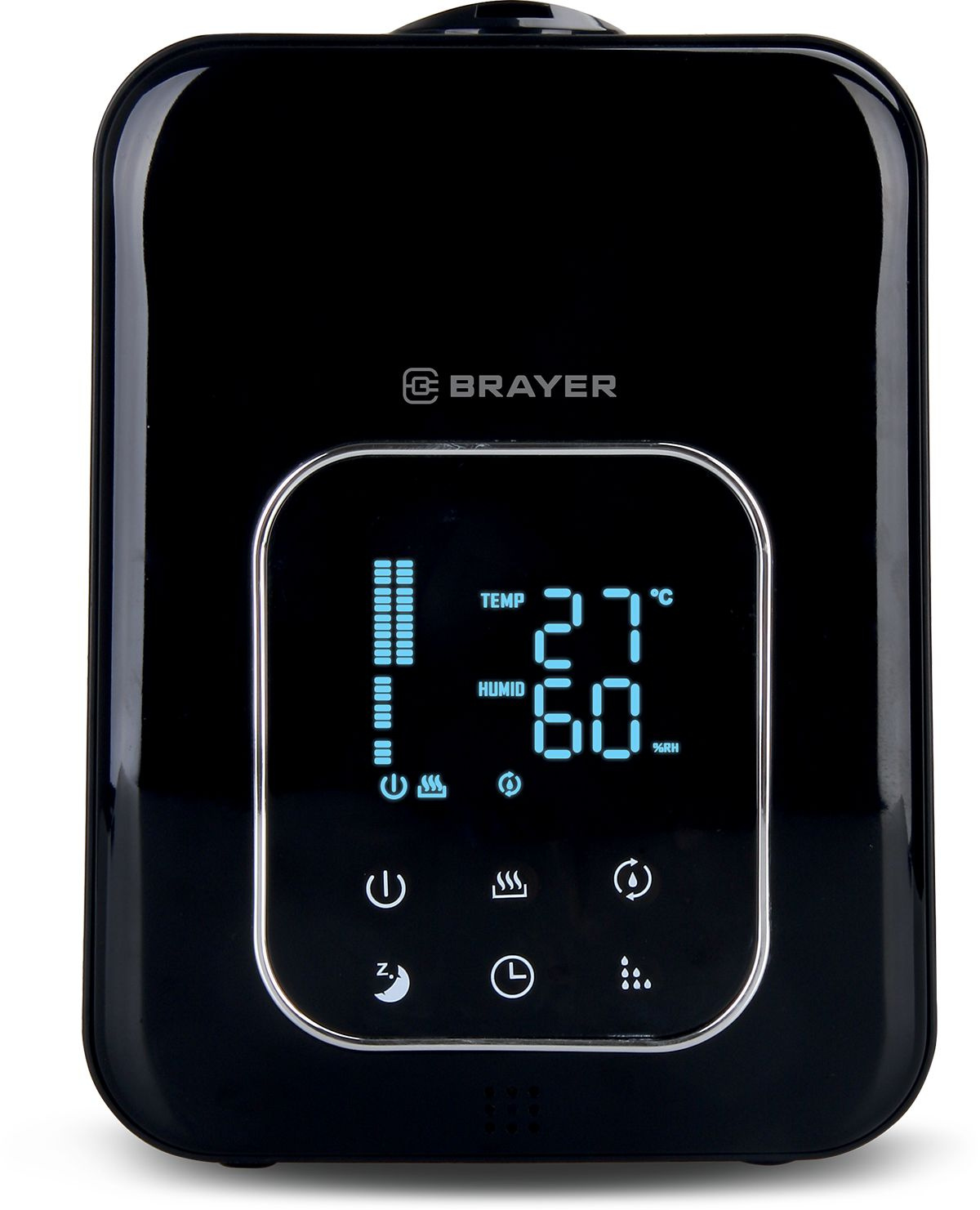 встроенный термометр, датчик уровня воды, дисплей, таймер, функция ароматизации воздуха