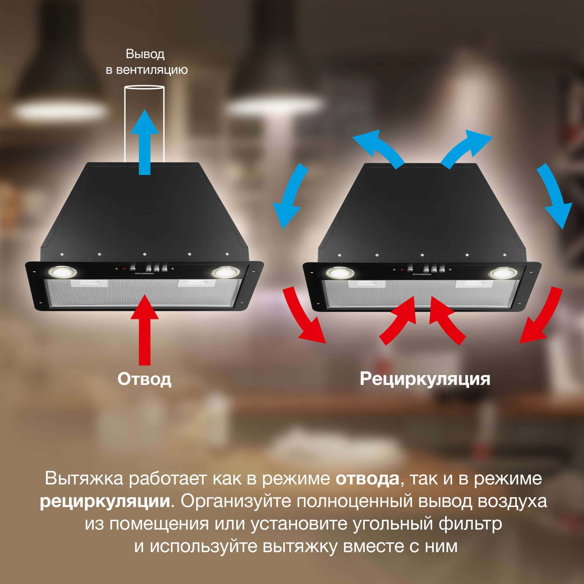 Хотите сделать Ваш кухонный гарнитур удобным и придать ему шарма? Полностью встраиваемая кухонная вытяжка HYUNDAI HBB 6035 BK позволит Вам рационально использовать пространство кухонных шкафов и поможет устранить запахи, которые возникают при приготовлении пищи.