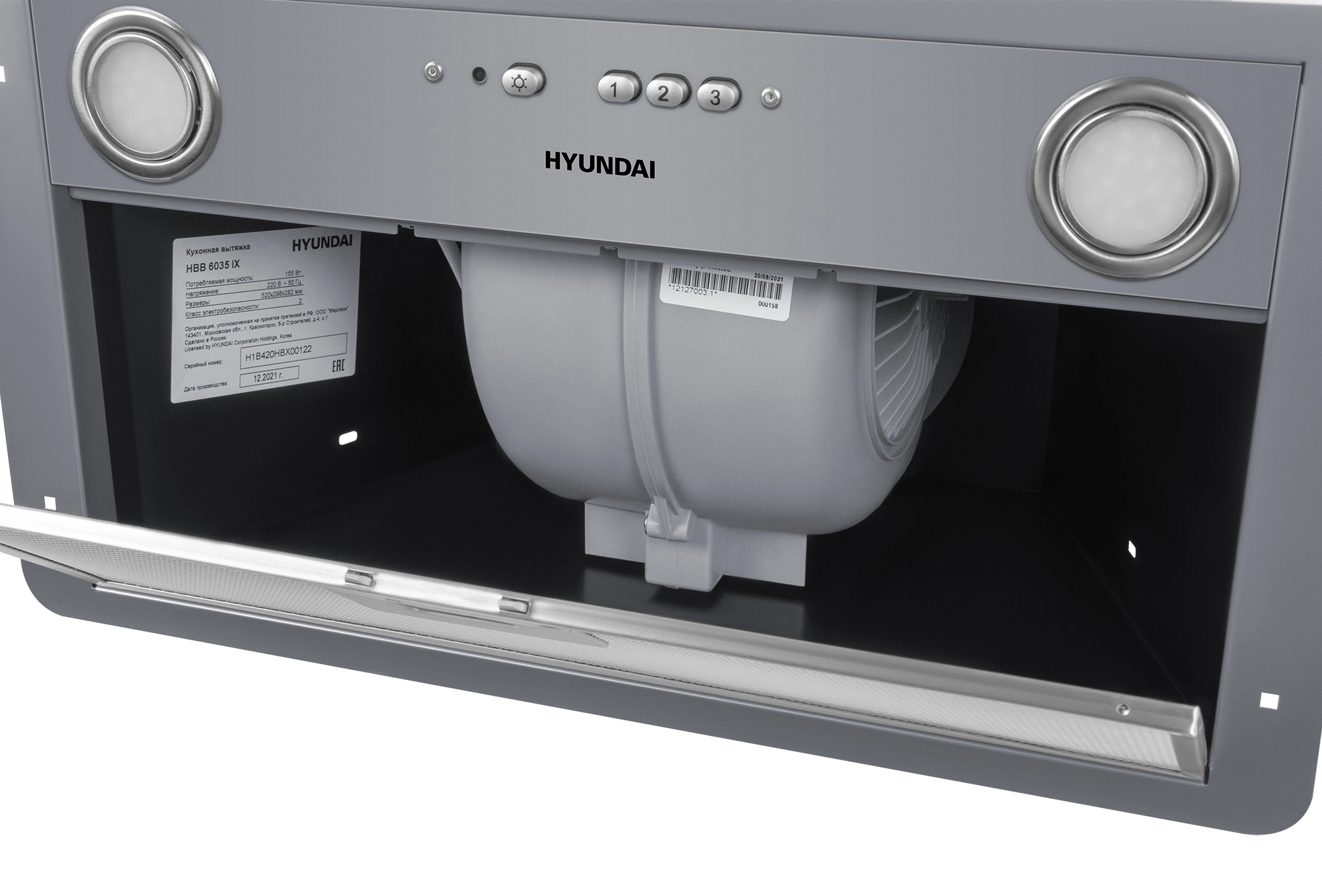 Для тех, кто привык рационально использовать кухонное пространство HYUNDAI разработал полностью встраиваемую кухонную вытяжку HYUNDAI HBB 6035 IX, выполненную в серебристом цвете.