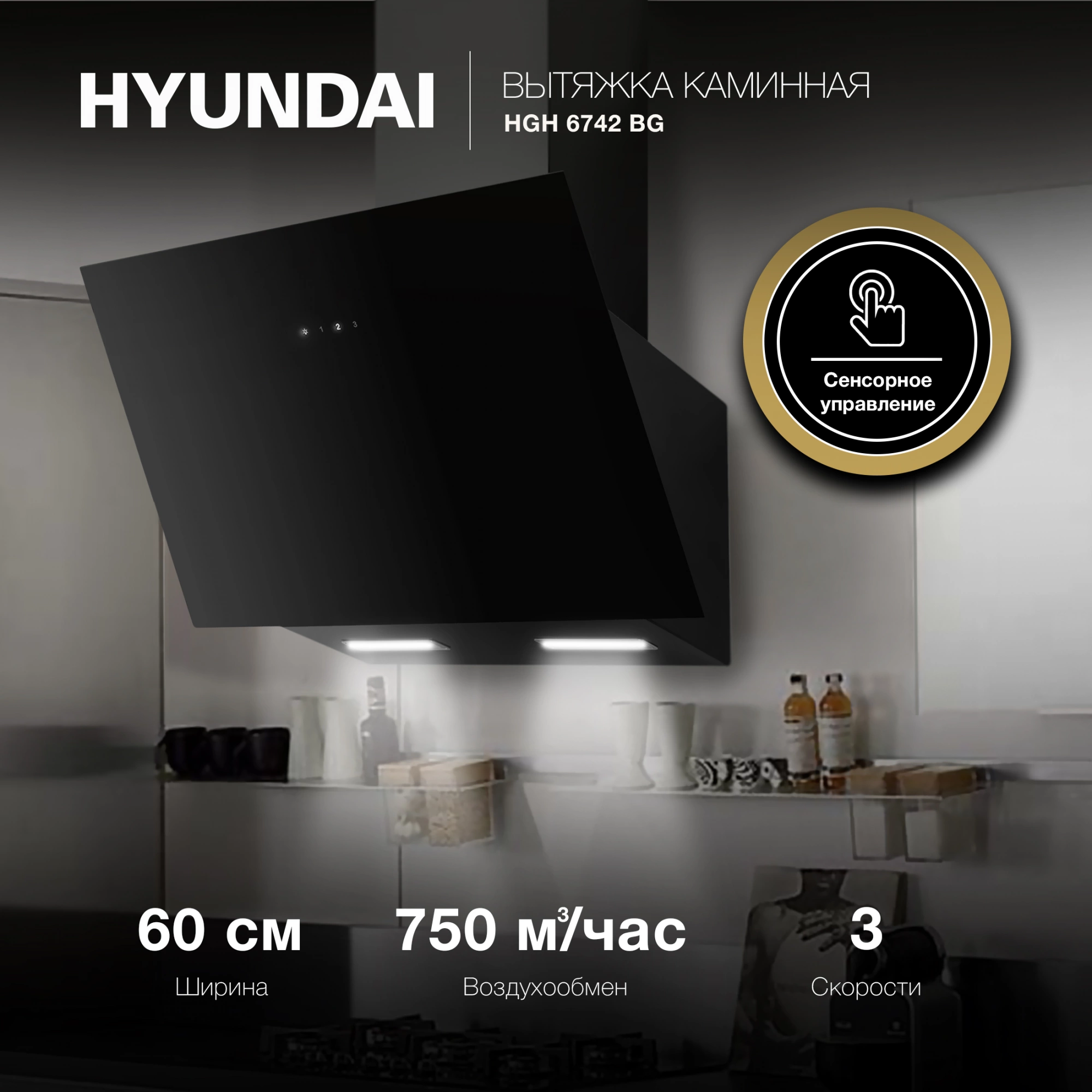 Черное цветовое исполнение вытяжки HYUNDAI HGH 6742 BG органично сочетается с остальной крупной бытовой техникой HYUNDAI – это позволяет подобрать для кухни полный комплект техники от известного корейского бренда.
