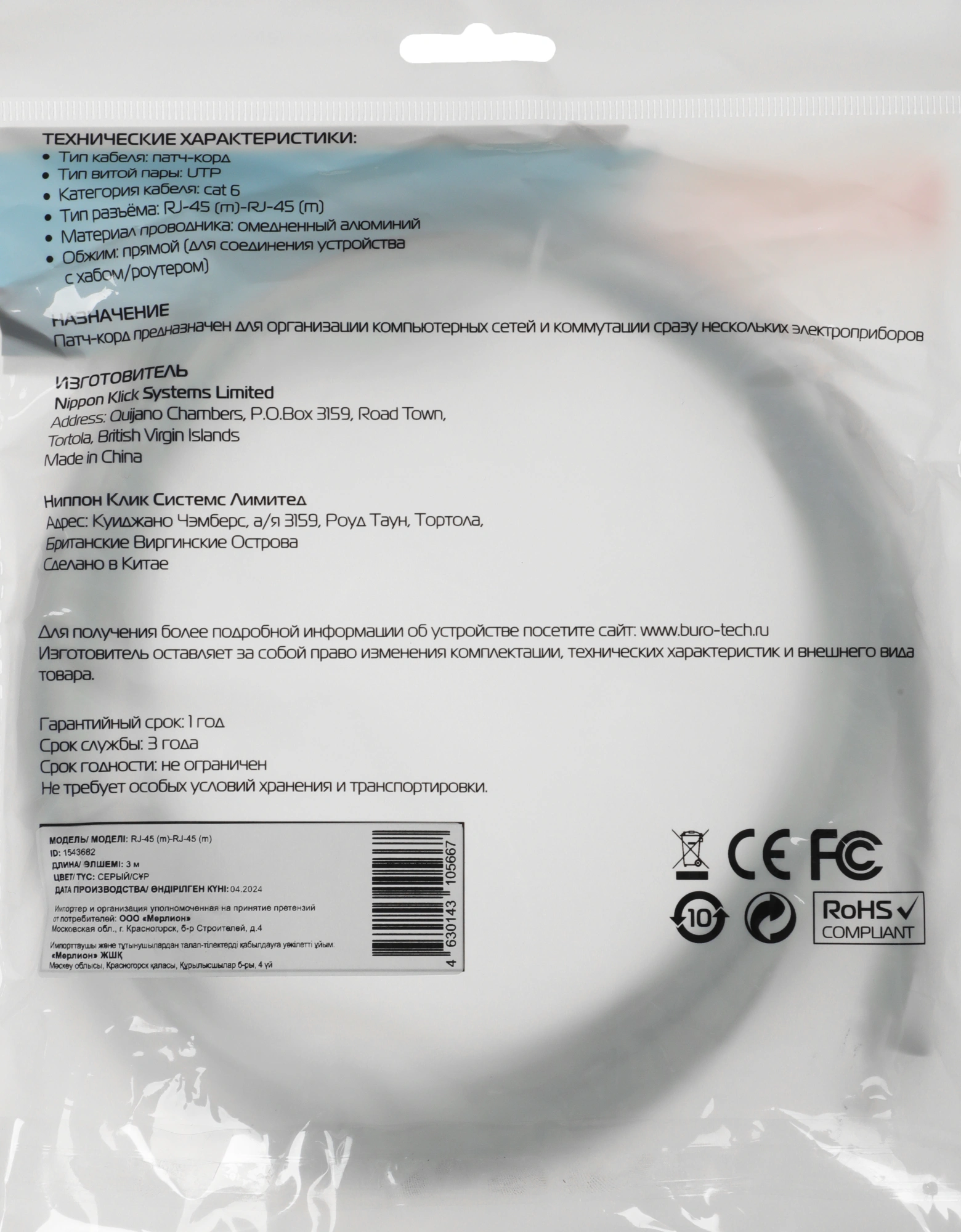 Патч-корд Buro UTP-6-3M-G