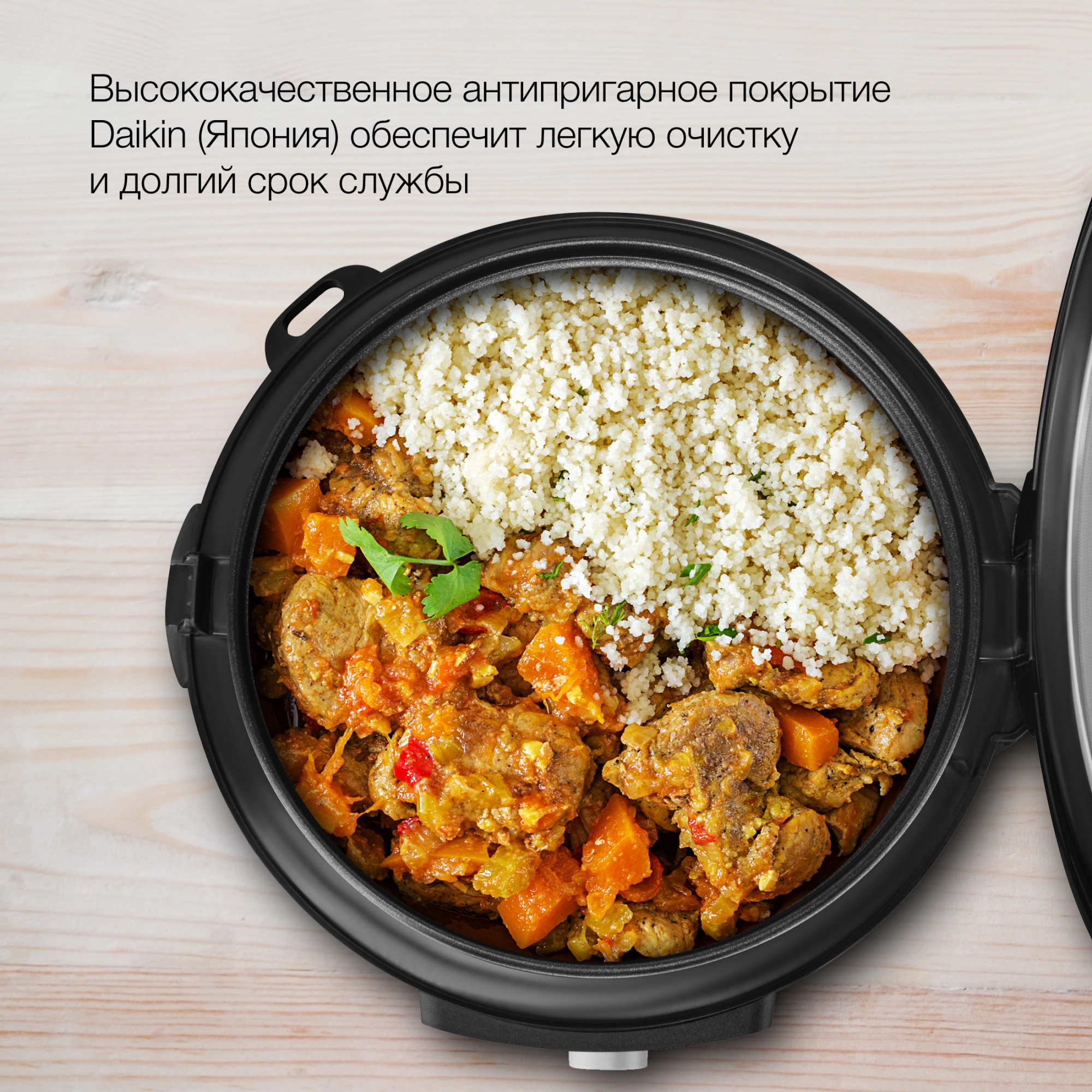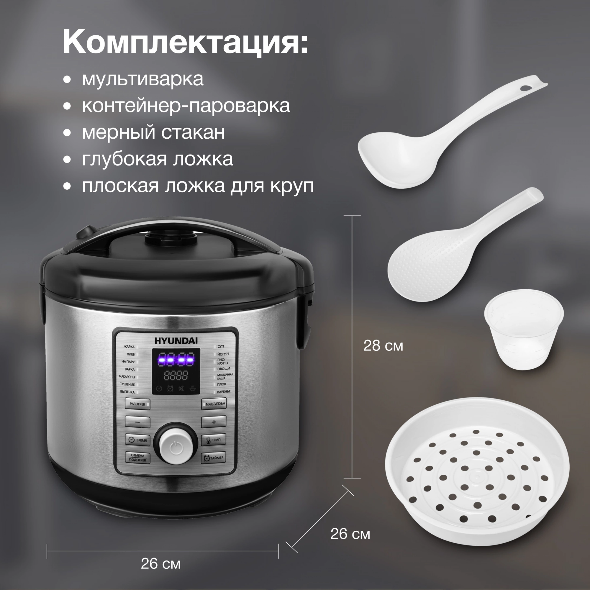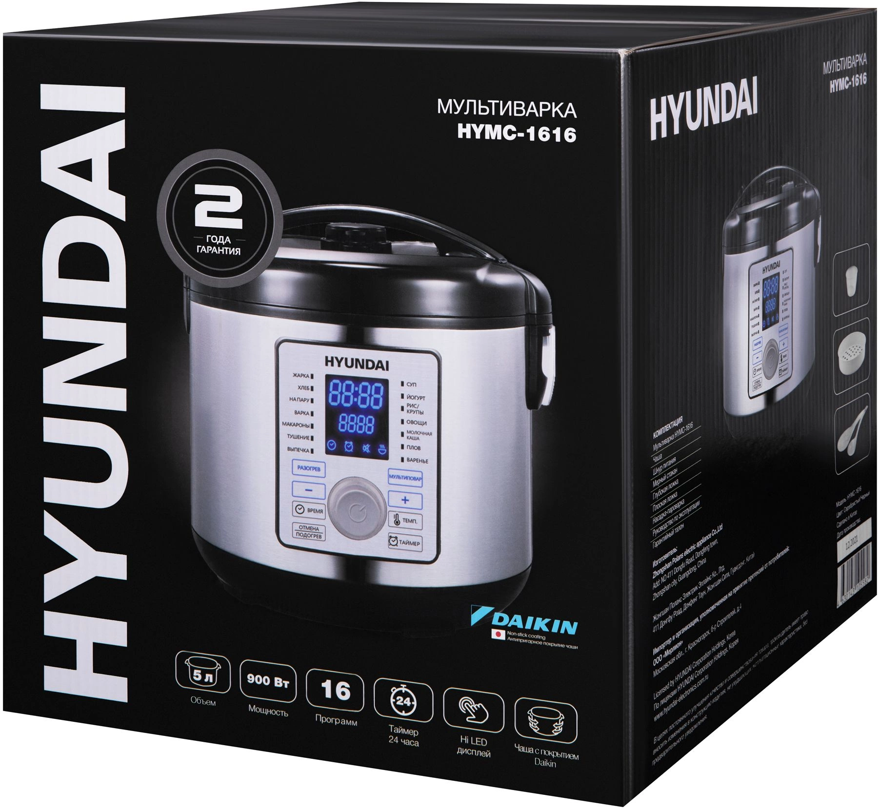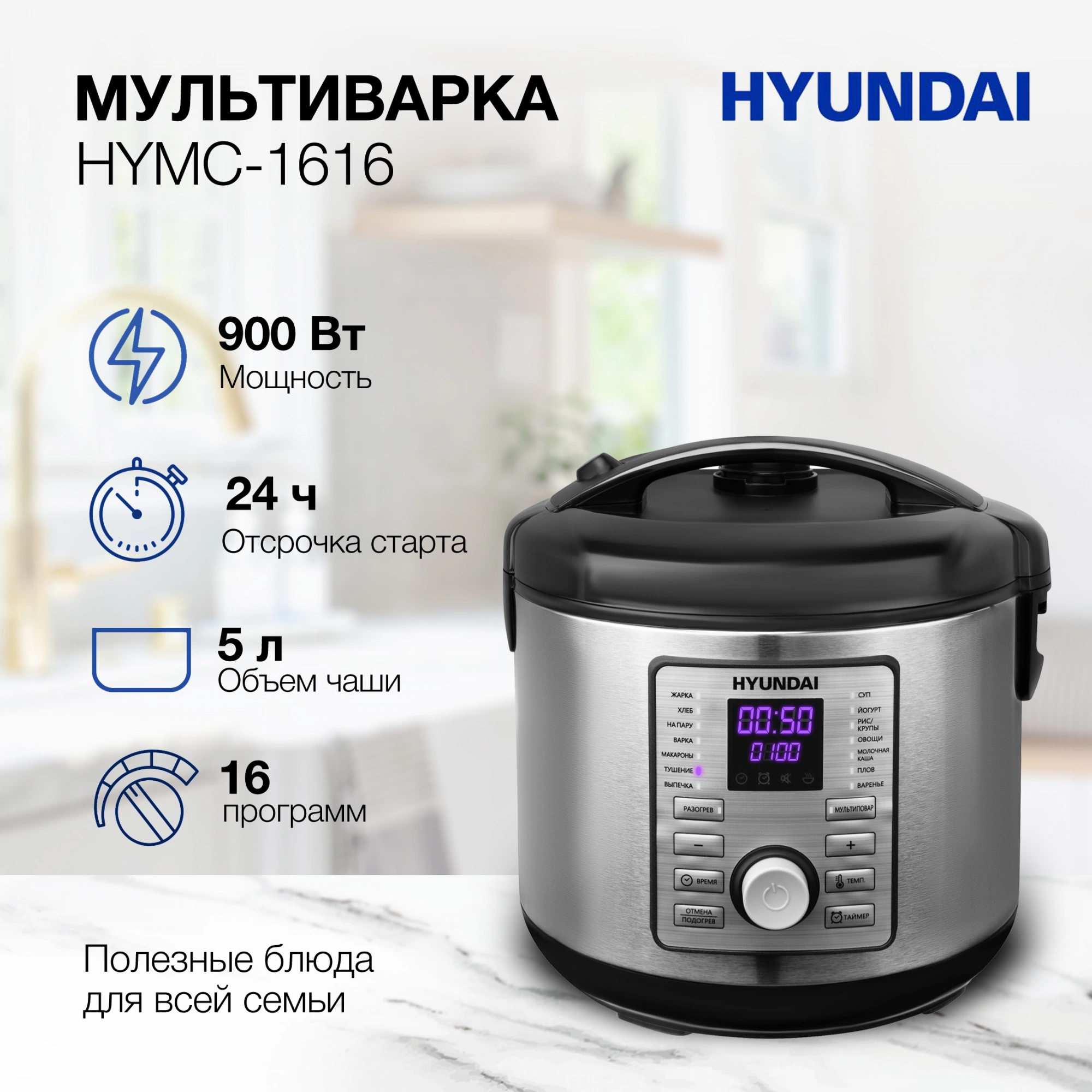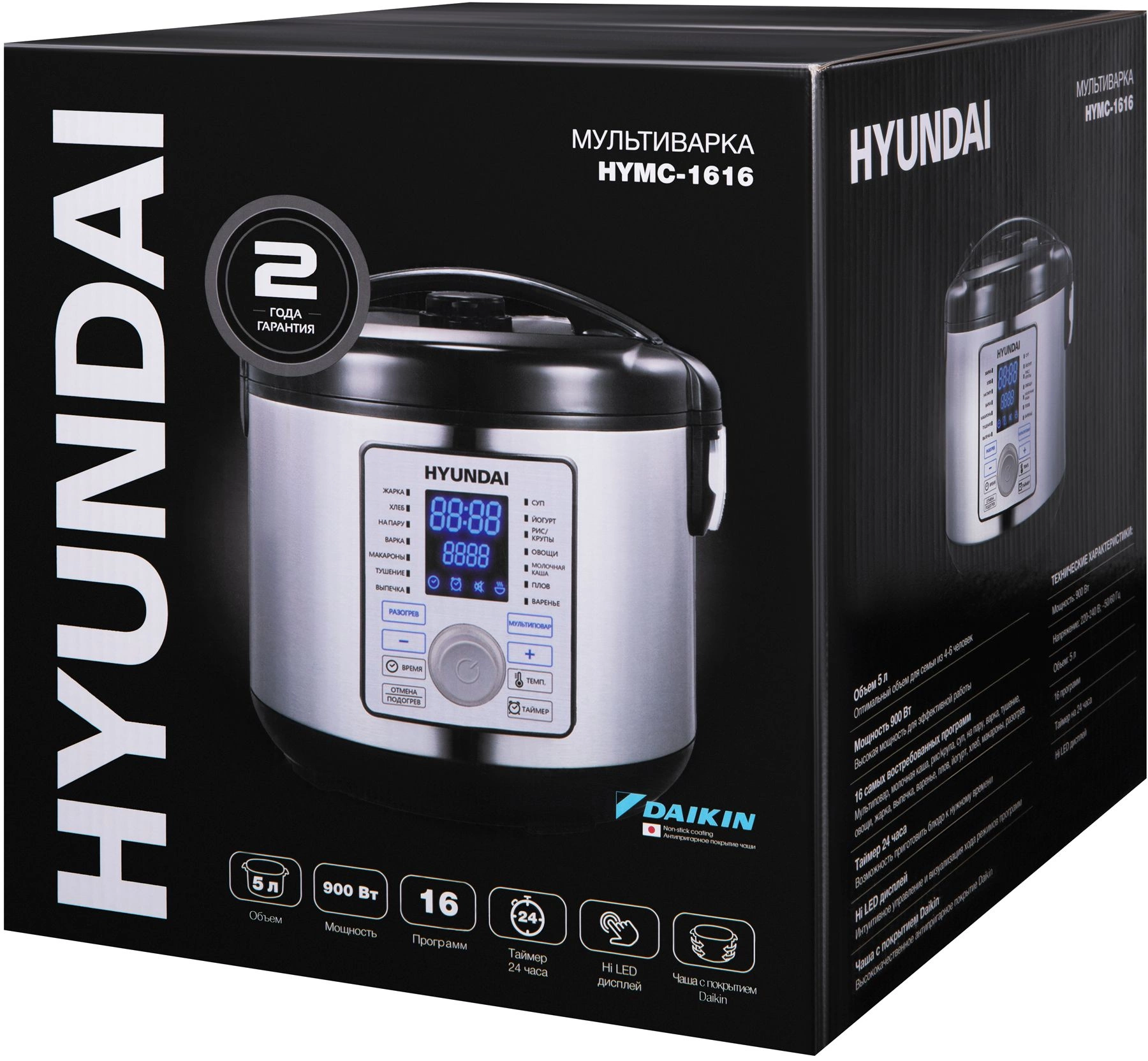 Мультиварка HYUNDAI HYMC-1616 является практически незаменимым кухонным инвентарем для каждой современной хозяйки. Такой бытовой прибор способен значительно упростить процесс приготовления пищи. Устройство выполнено в двух цветах: оптимально сочетаются серебристый и черный. На фронтальной части есть сенсорные клавиши управления и экран. Сверху имеется съёмный клапан для выхода пара и кнопка для открывания крышки. Мощность мультиварки составляет 900 Ватт, а объём используемой чаши равен 5 литрам. Здесь присутствует антипригарное покрытие, с помощью бытового прибора можно разогревать пищу или поддерживать ее температуру заданный промежуток времени.
