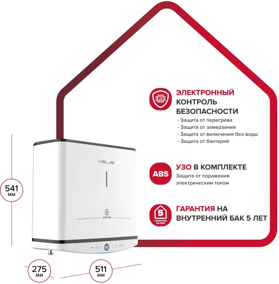защита от включения без воды, магниевый анод увеличенного размера, предохранительный клапан, УЗО