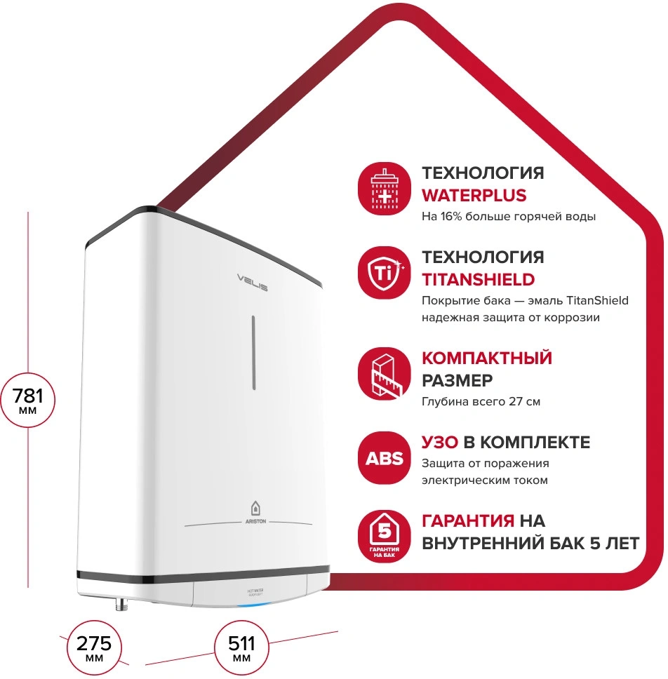 магниевый анод увеличенного размера, предохранительный клапан, УЗО