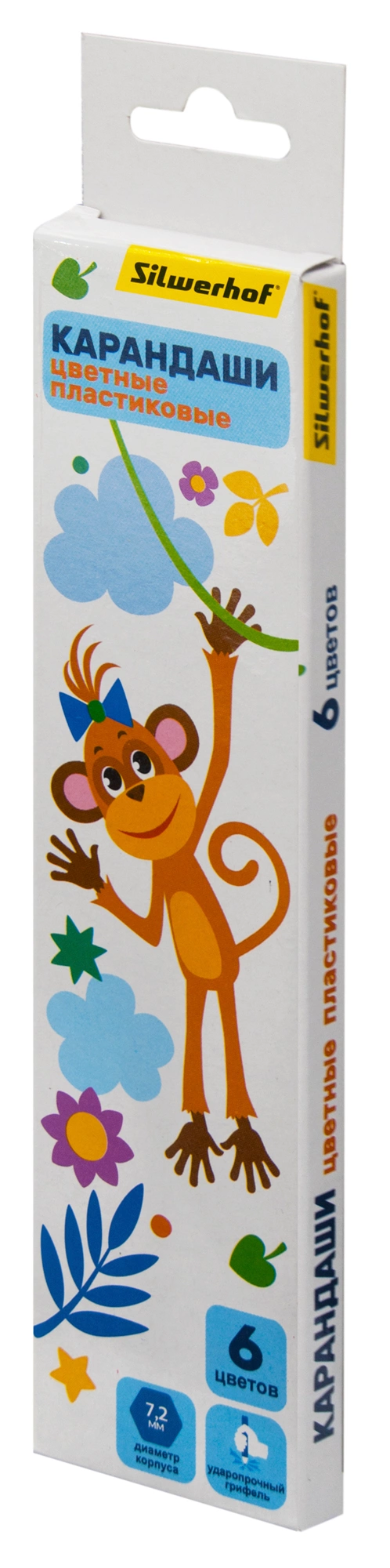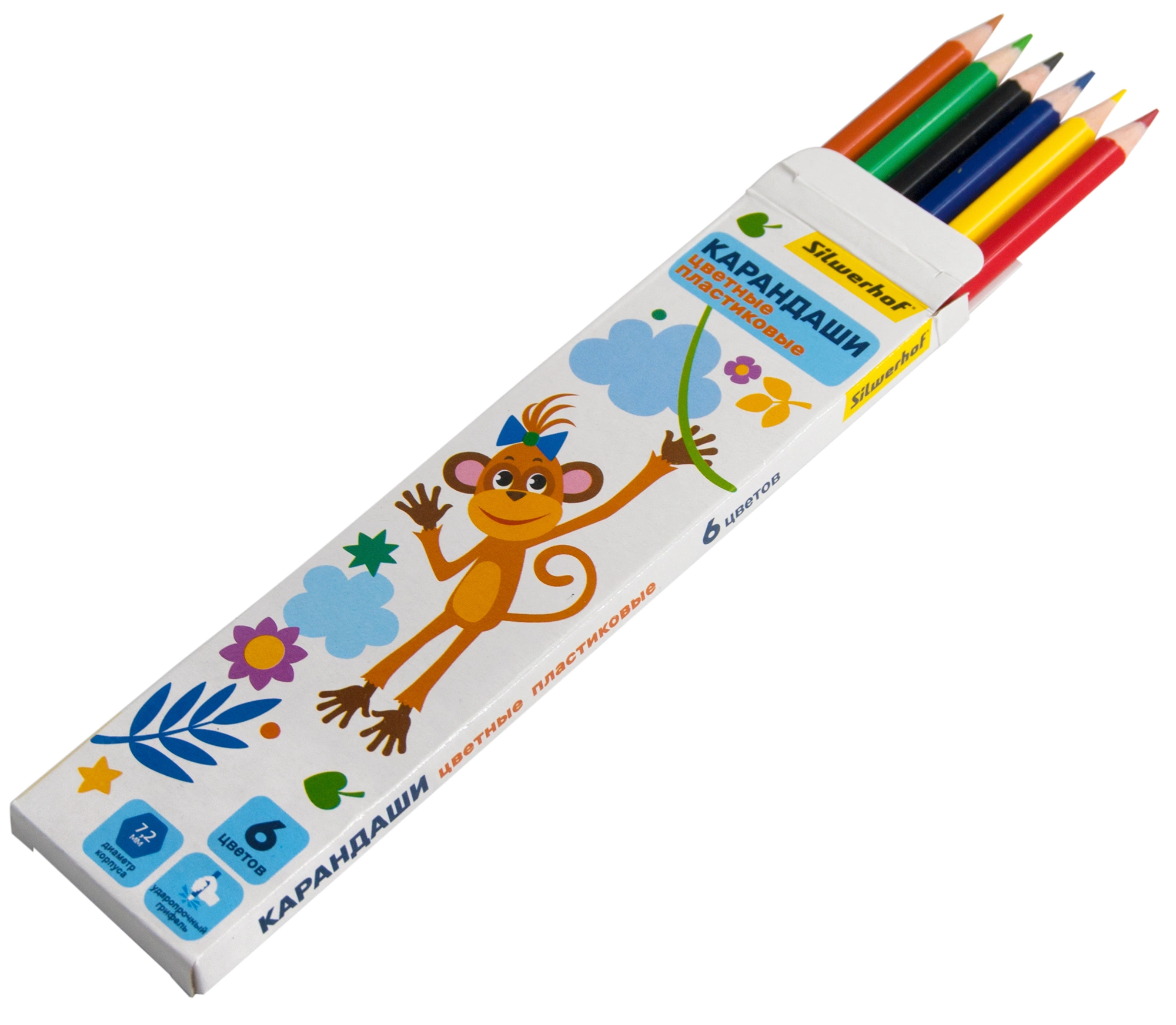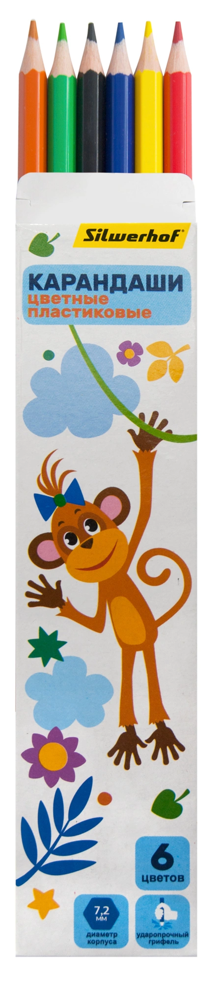 Карандаши цв. Silwerhof Веселые друзья 2.6мм шестигран. пластик ассорти 6цв. коробка/европод.