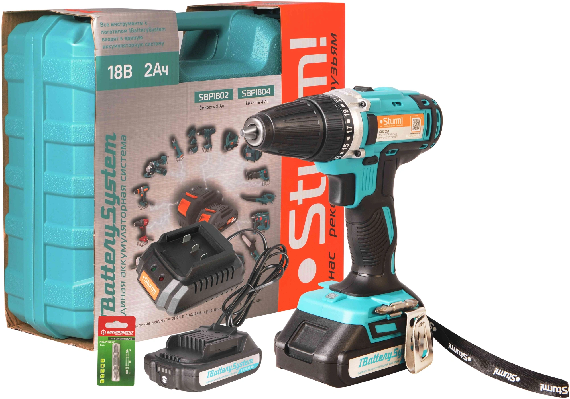 Шуруповерт, двусторонняя бита - 2 шт., зарядное устройство, аккумуляторная батарея - 2 шт., инструкция, пластиковый кейс.