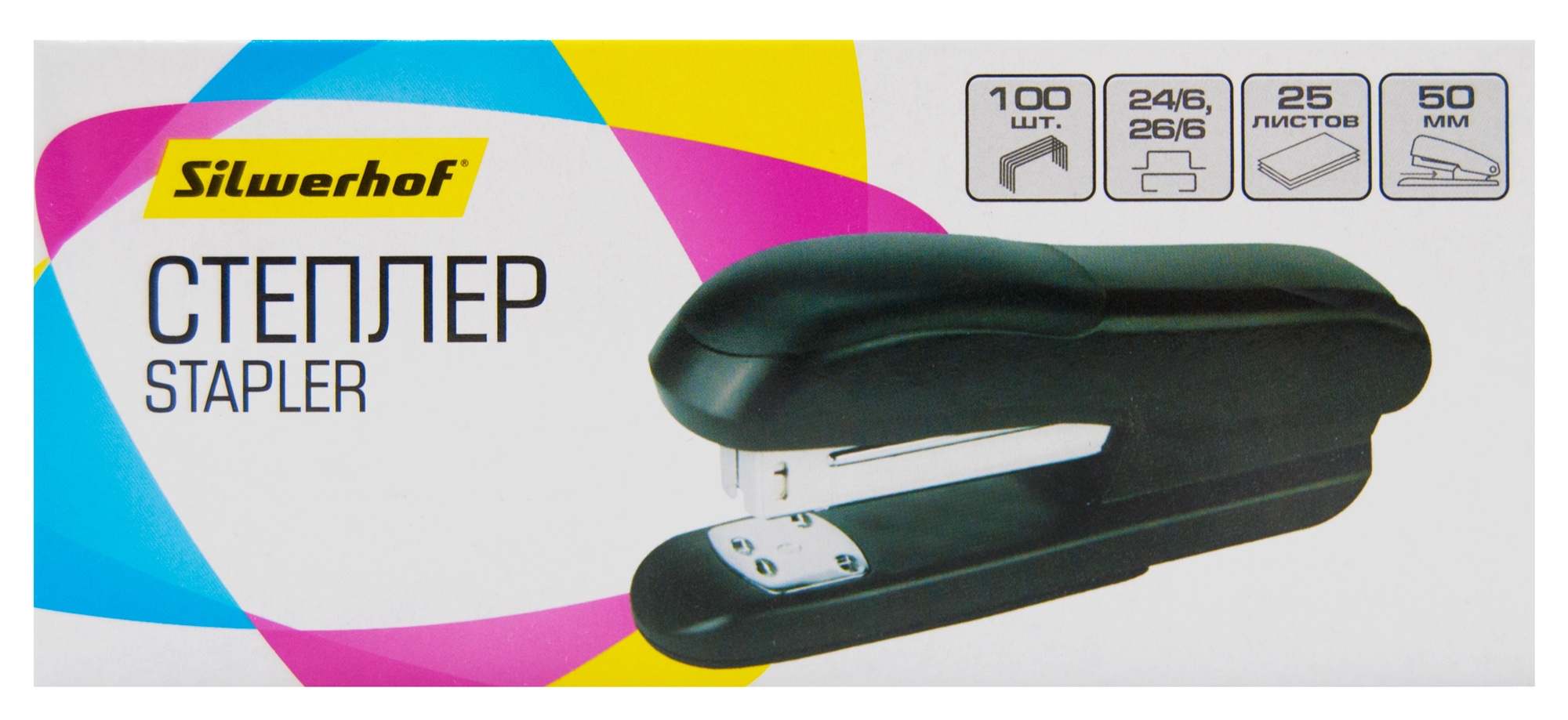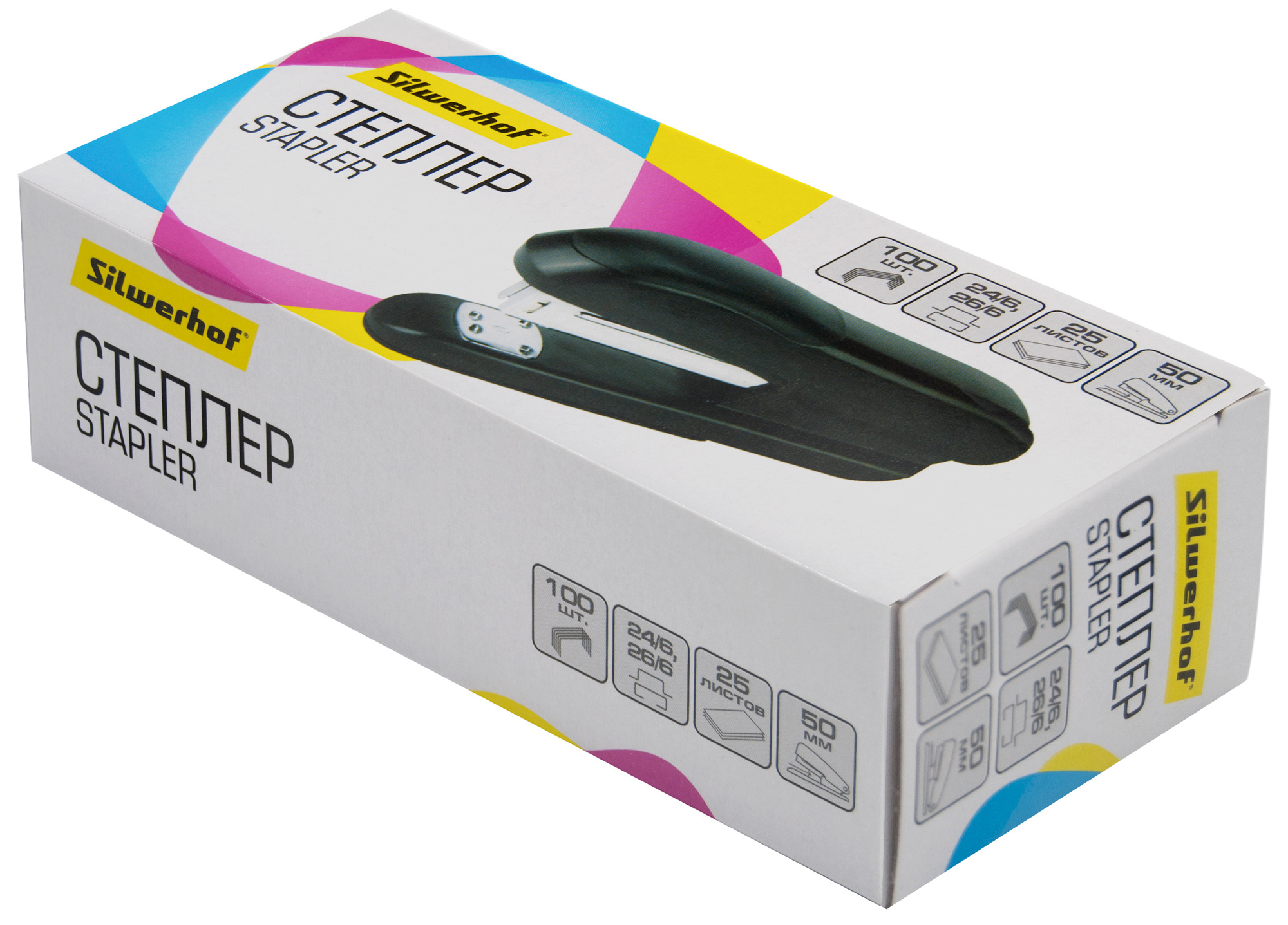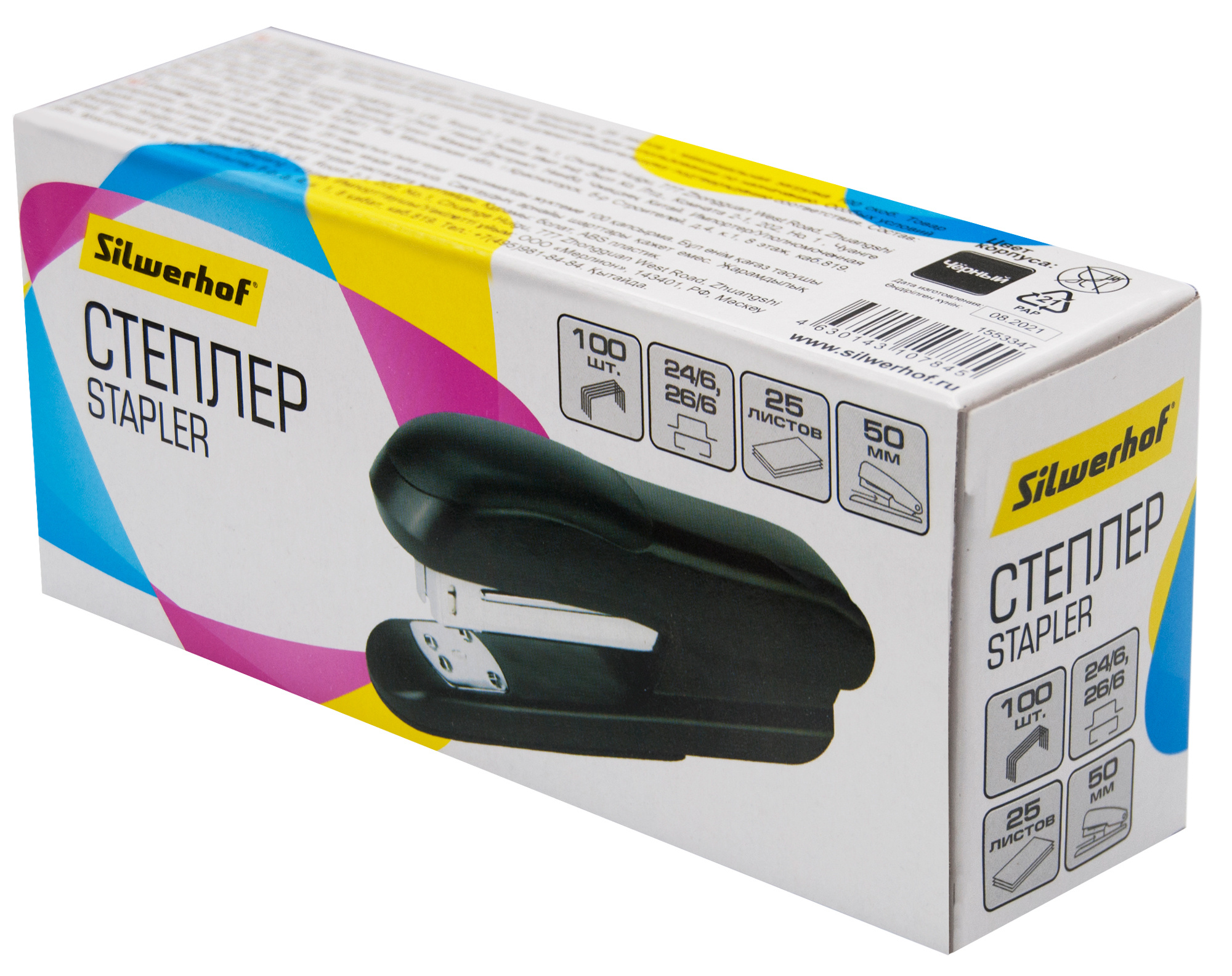 Степлер Silwerhof 24/6 26/6 (25листов) черный 100скоб закрытый/открытый