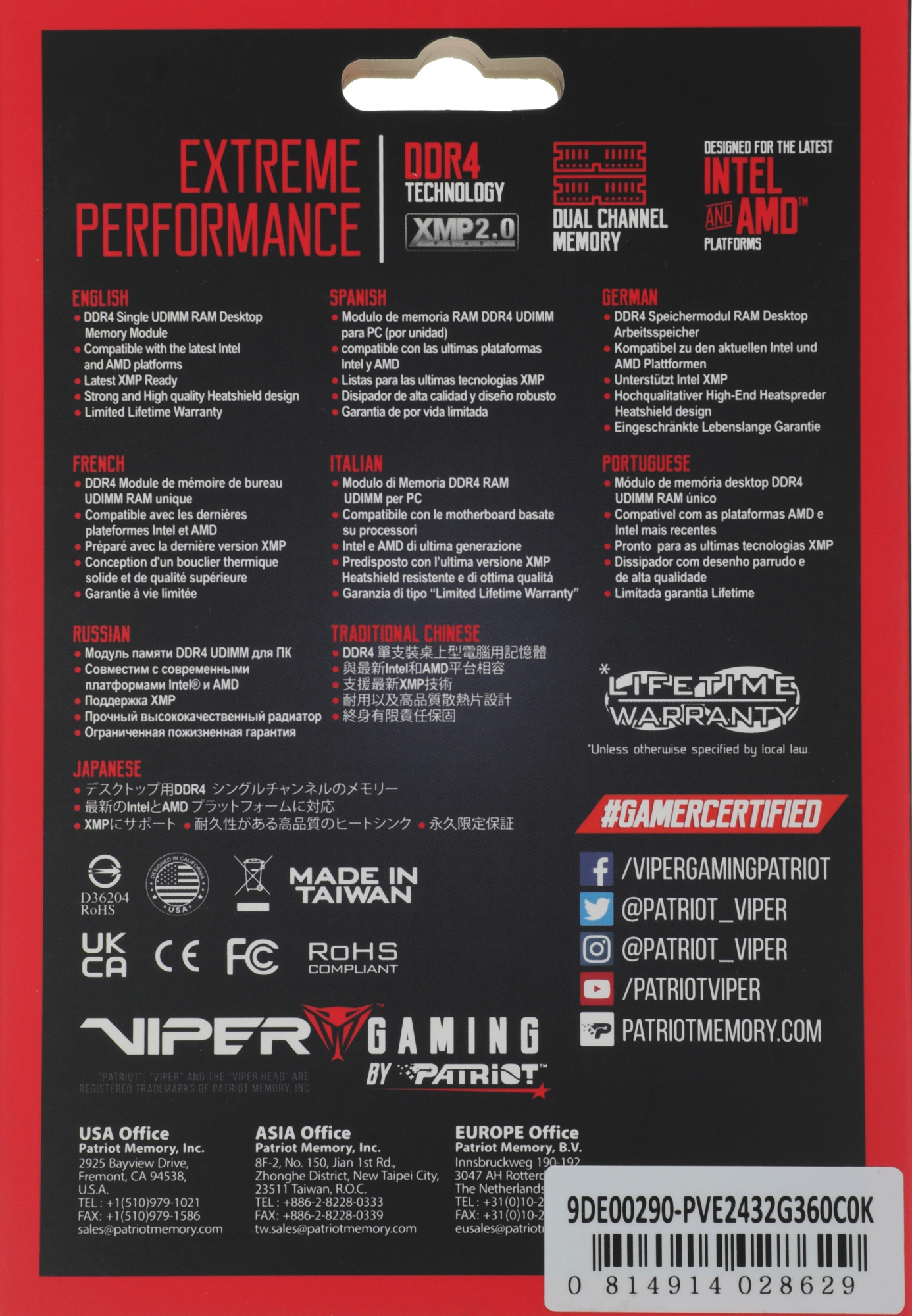 Viper Elite II RTL Gaming PC4-28800 CL20 DIMM 288...