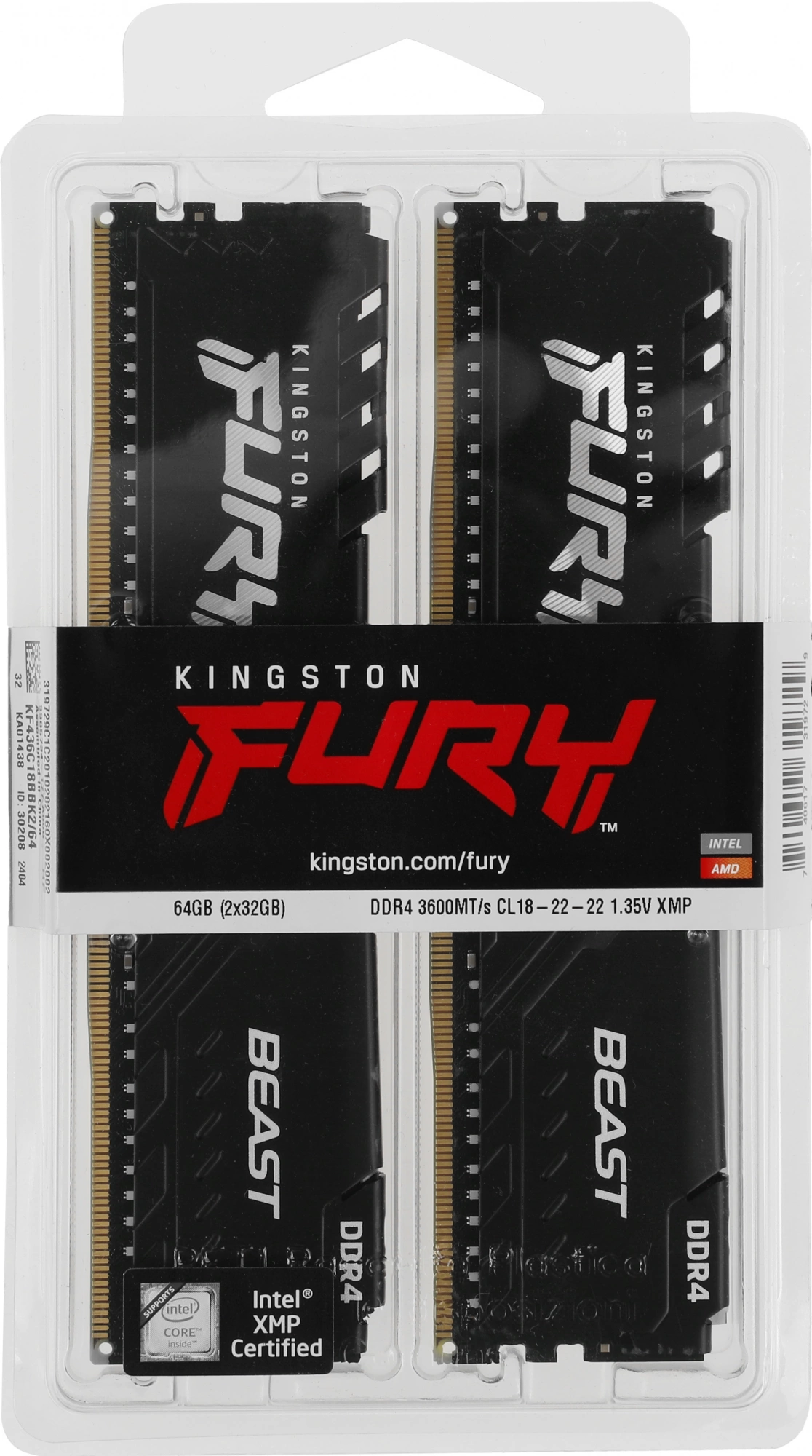 Память DDR4 2x32Gb 3600MHz Kingston KF436C18BBK2/64