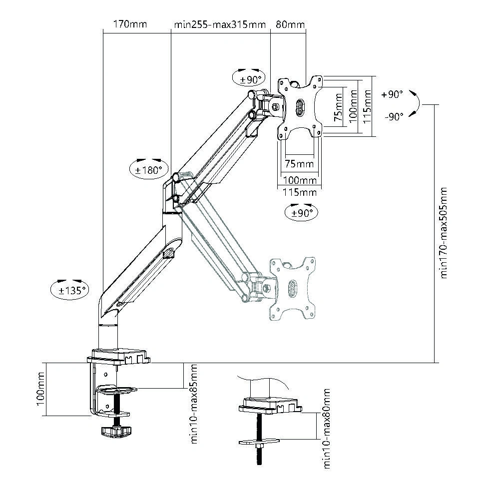 серебристый 17"-32" макс.9кг крепление к столешниц...