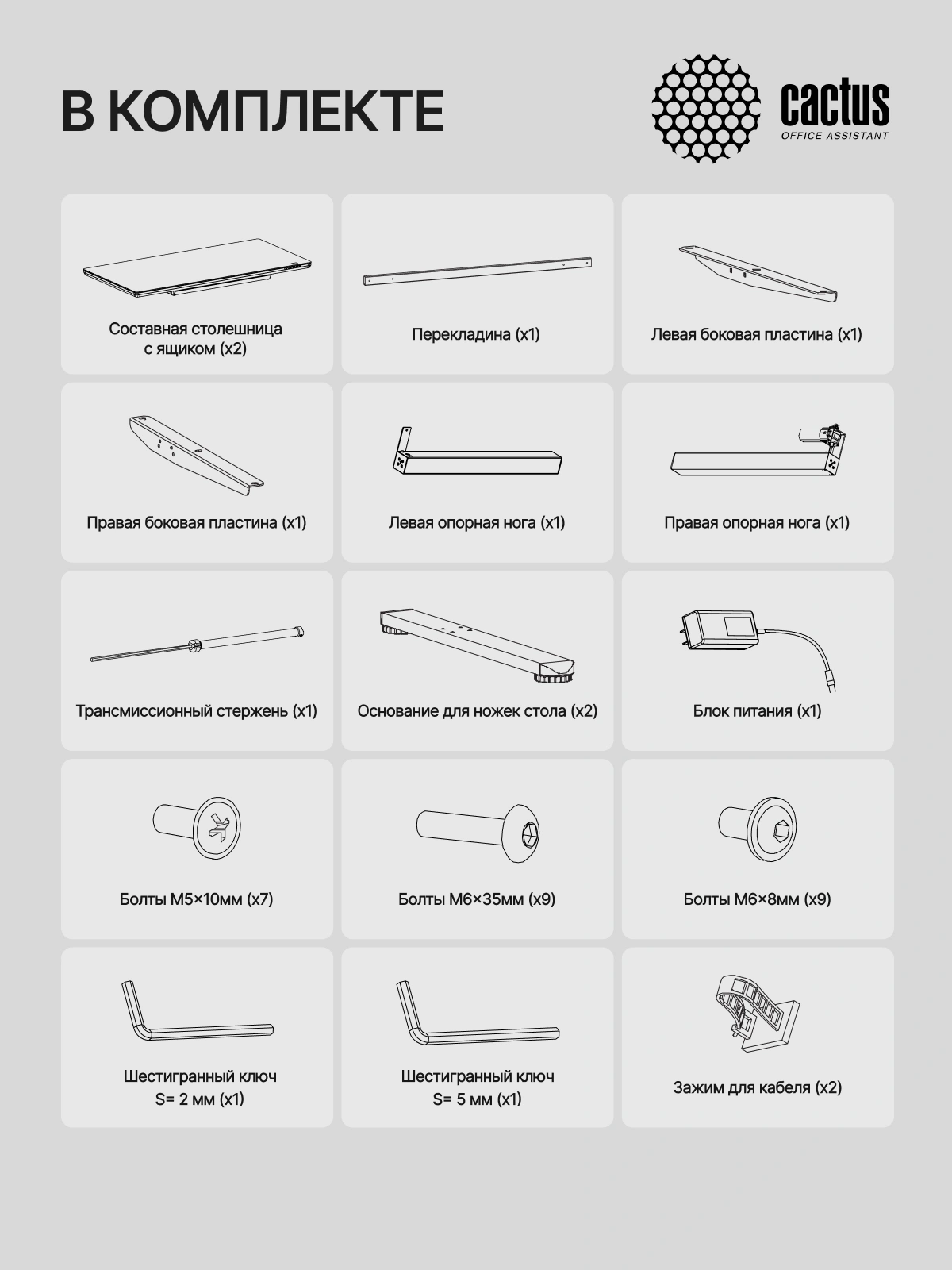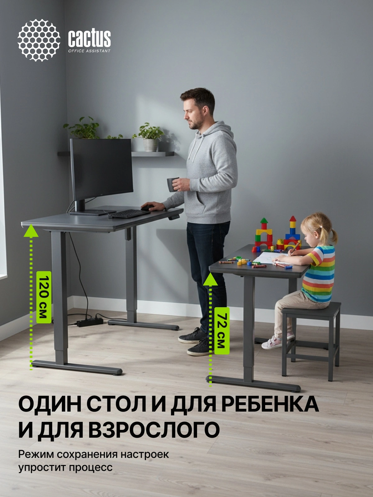 диапазон регулировки высоты: 72-120 см; скорость подъема/опускания: 25 мм/с; уровень шума при подъеме/опускании: <55dB; память положений: 2