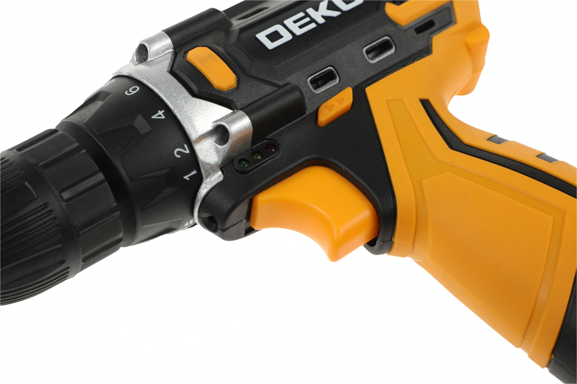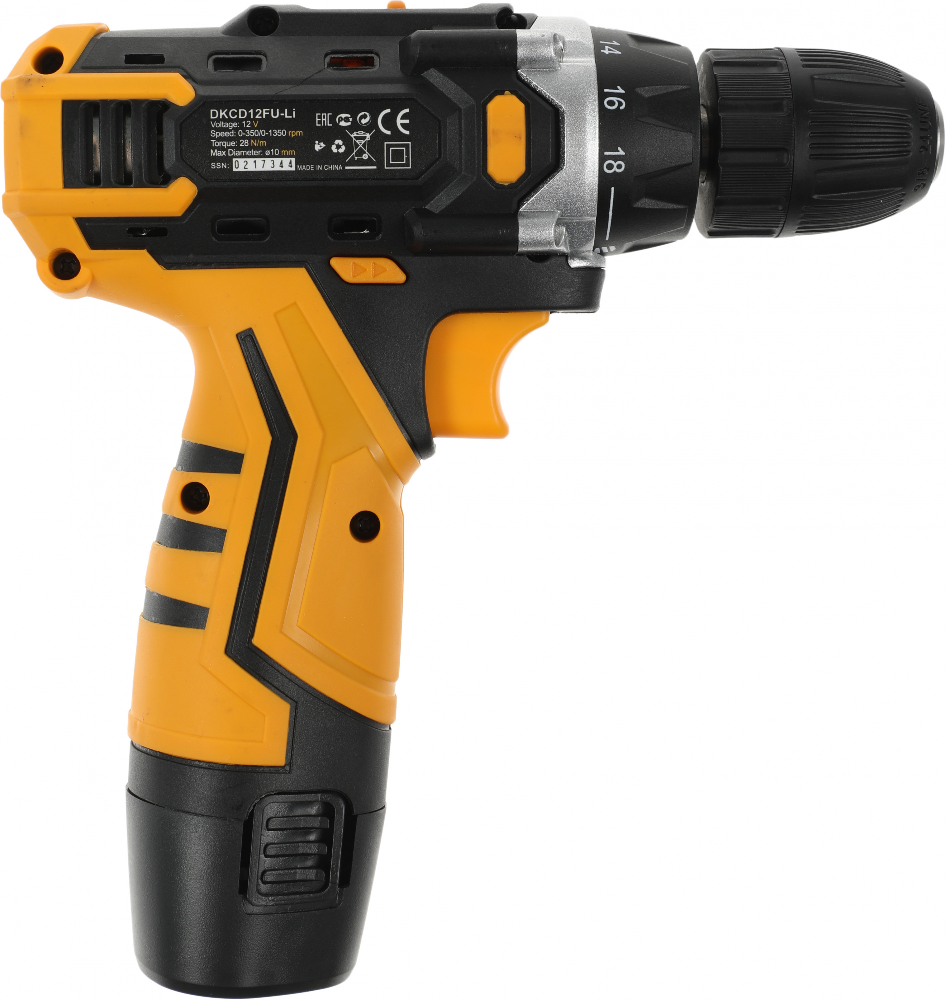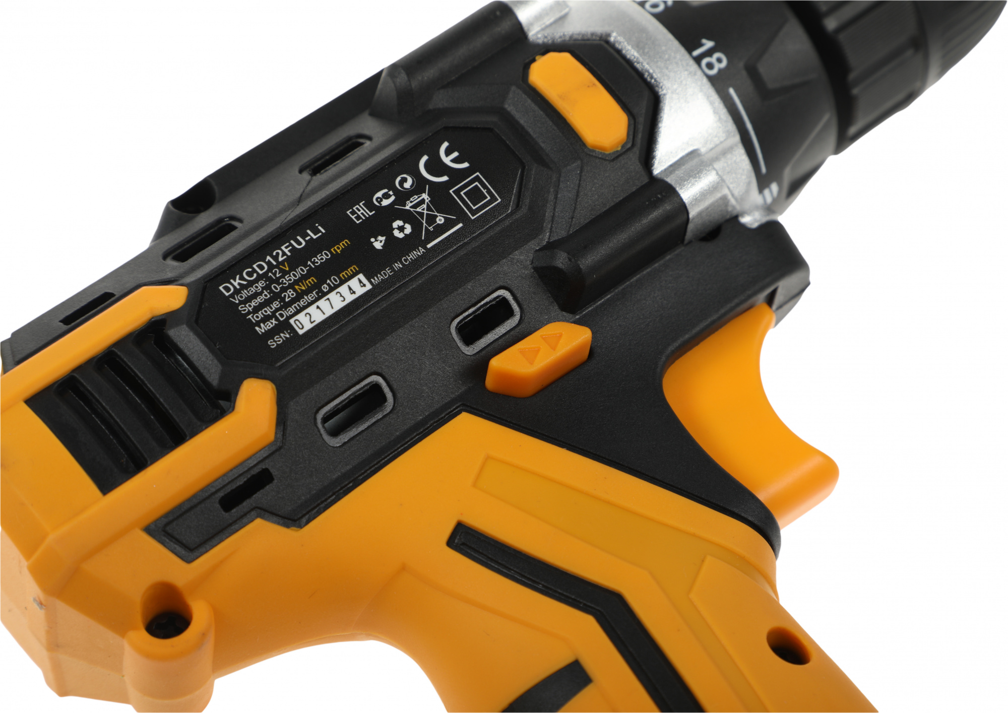 Дрель аккумуляторная, АКБ, зарядное устройство, свёрла: 2; 2,5; 3; 4; 5; 6 мм, биты: SL4,6, PH1,2, PZ1,2 - 6 шт., магнитный держатель бит - 60 мм.