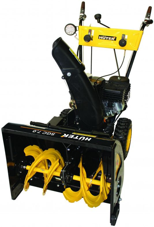 Бензиновый снегоуборщик Huter SGC 7,0 предназначен для расчистки небольших территорий от снега. Шнек с зубцами измельчает плотный снег. Благодаря глубокому протектору колеса не скользят при гололеде, обеспечивая хорошую проходимость машины. Поворот желоба регулируется специальным рычагом.